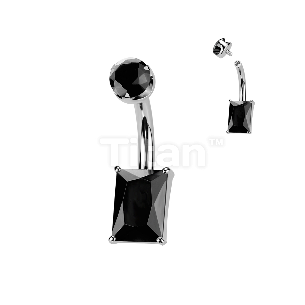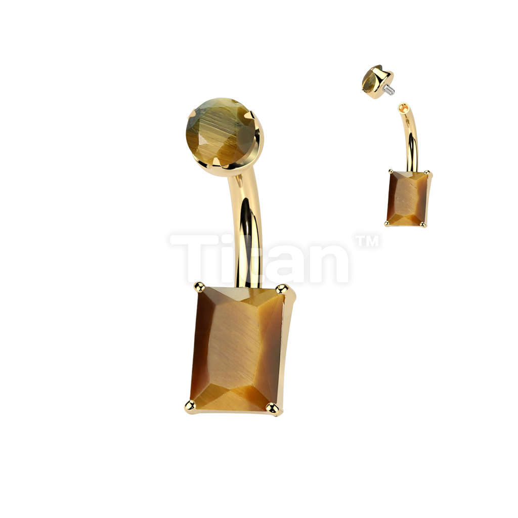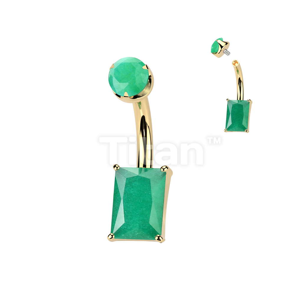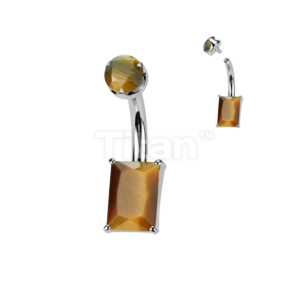 Implant Grade Titanium Internally Threaded Rectangle Prong Set Natural Gem Stone Belly Button Navel Ring With Semi-Bezel Set Top