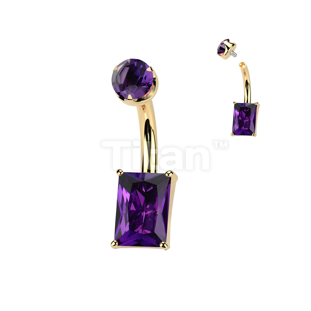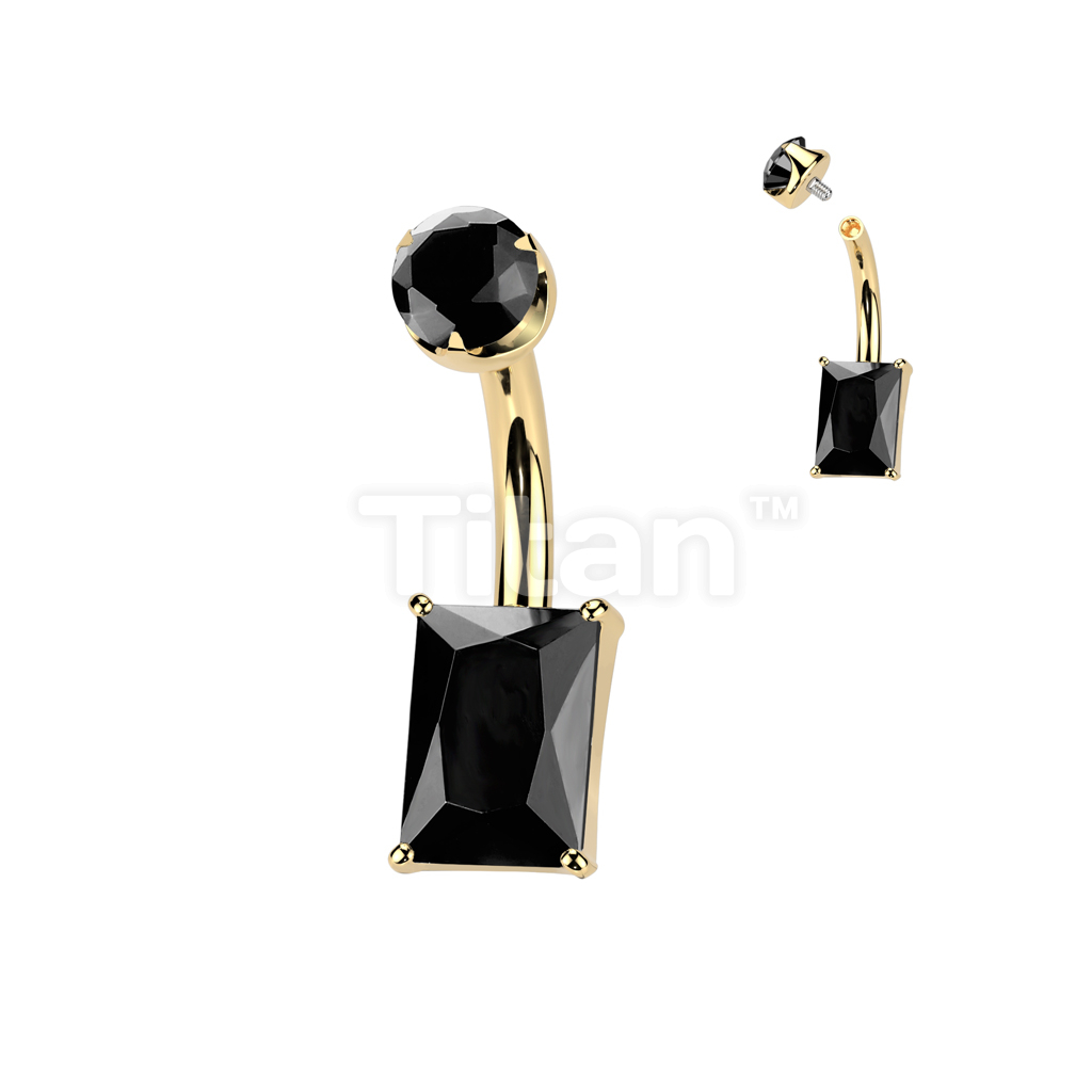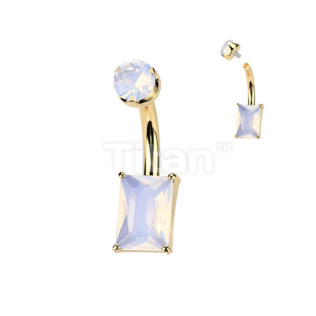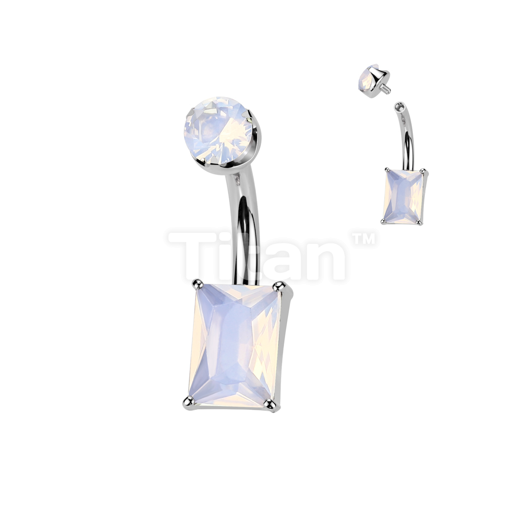 Implant Grade Titanium Internally Threaded Rectangle Prong Set Natural Gem Stone Belly Button Navel Ring With Semi-Bezel Set Top
