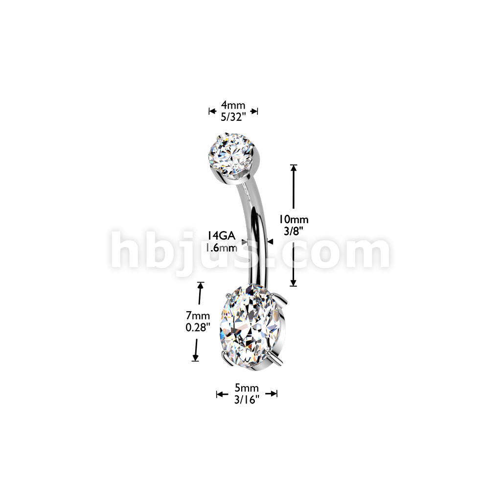 Implant Grade Titanium Internally Threaded Prong Set Oval Moissanite Bottom With Flat Back Prong Set Round Moissanite Top Belly Button Ring