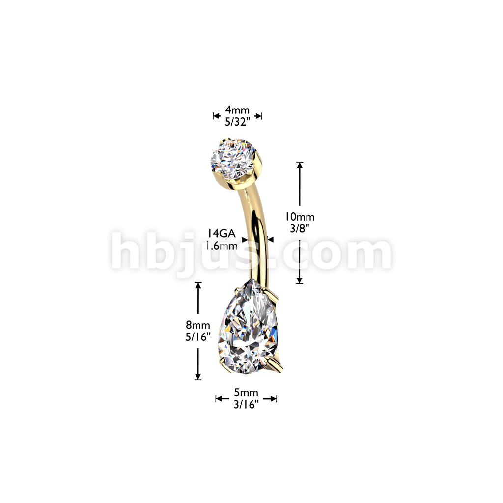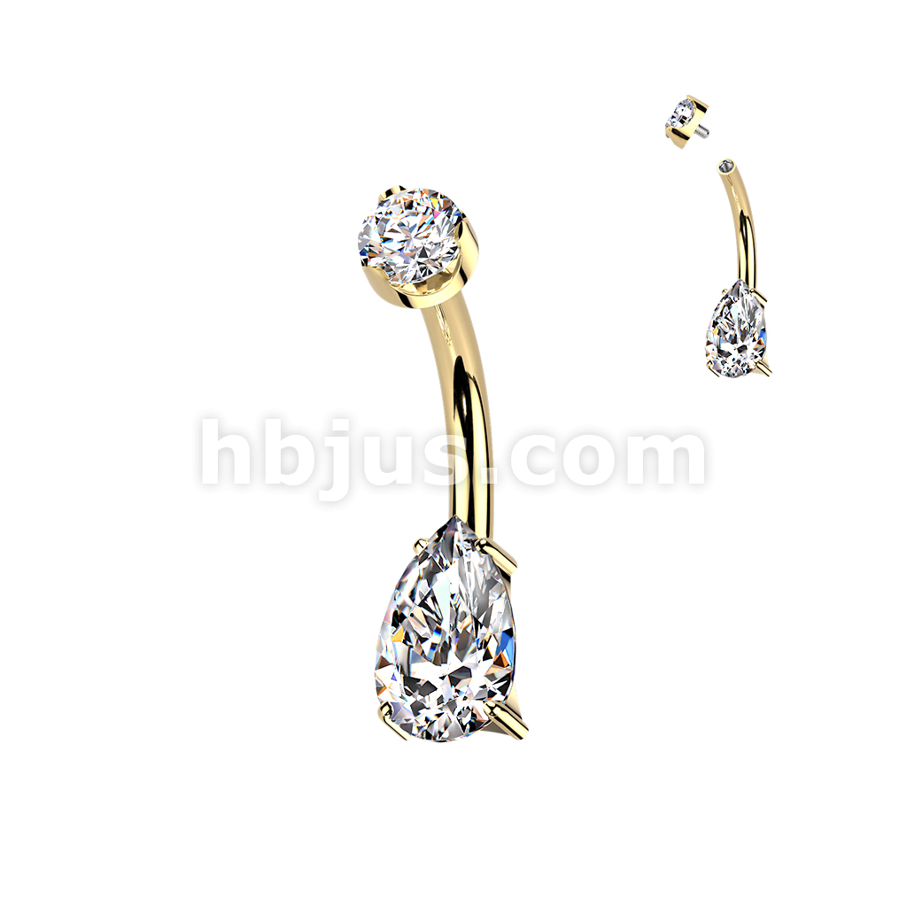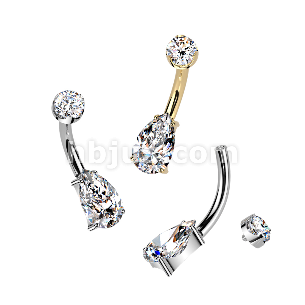 Implant Grade Titanium Internally Threaded Teardrop Prong Set Moissanite Bottom With Flat Back Prong Set Round Moissanite Top Belly Button Ring