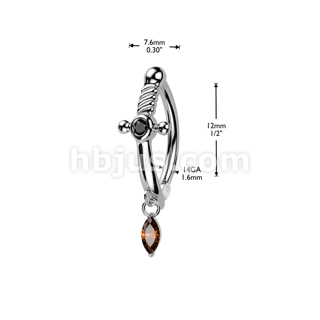 316L Hinged Dagger Belly Button Ring With Marquise CZ Dangle