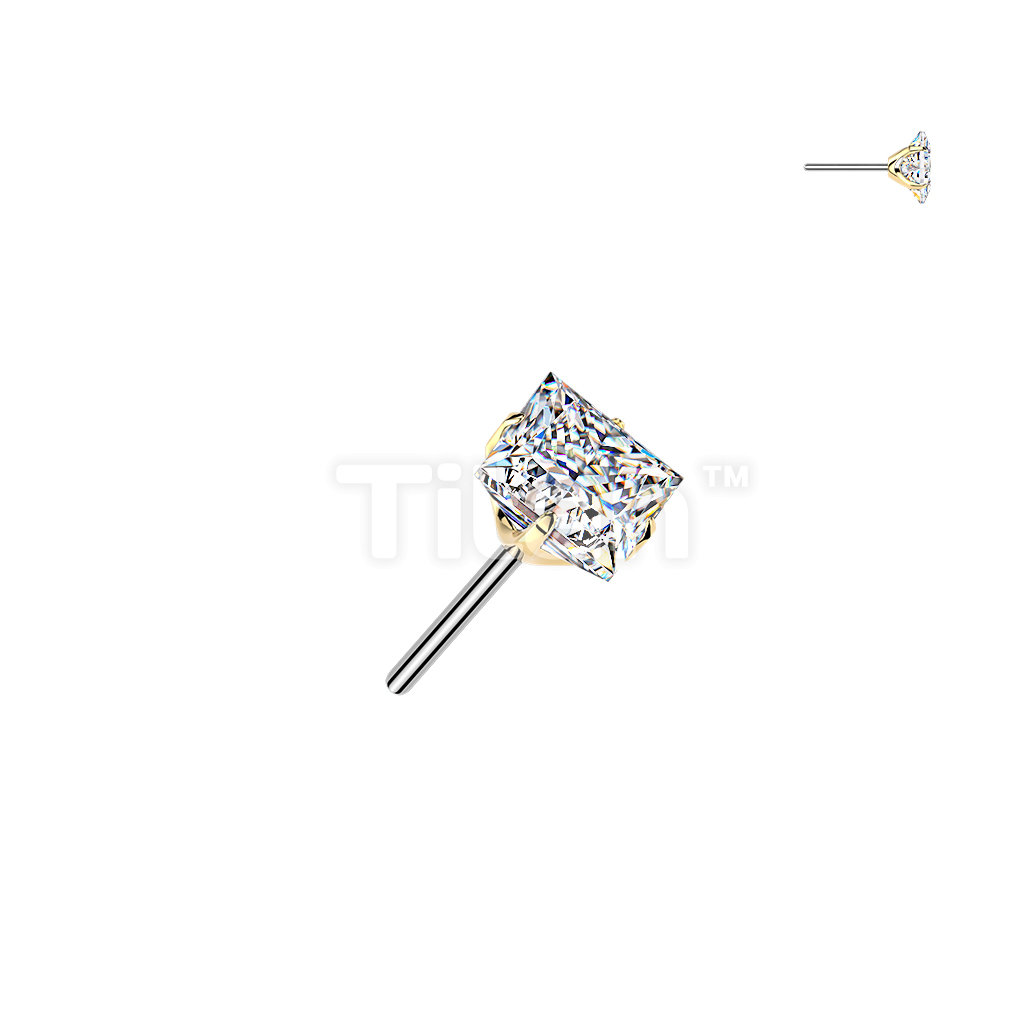 Titanium Threadless Push In Square Prong Set Moissanite Top