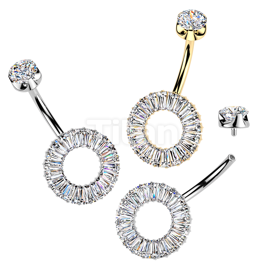 Titanium Internally Threaded Baguette CZ Circle With Flat Back Prong Set CZ Top Belly Button Ring