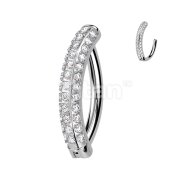 Titanium Hinged Hoop Belly Ring With Pave CNC Set Moissanite Triple Line