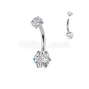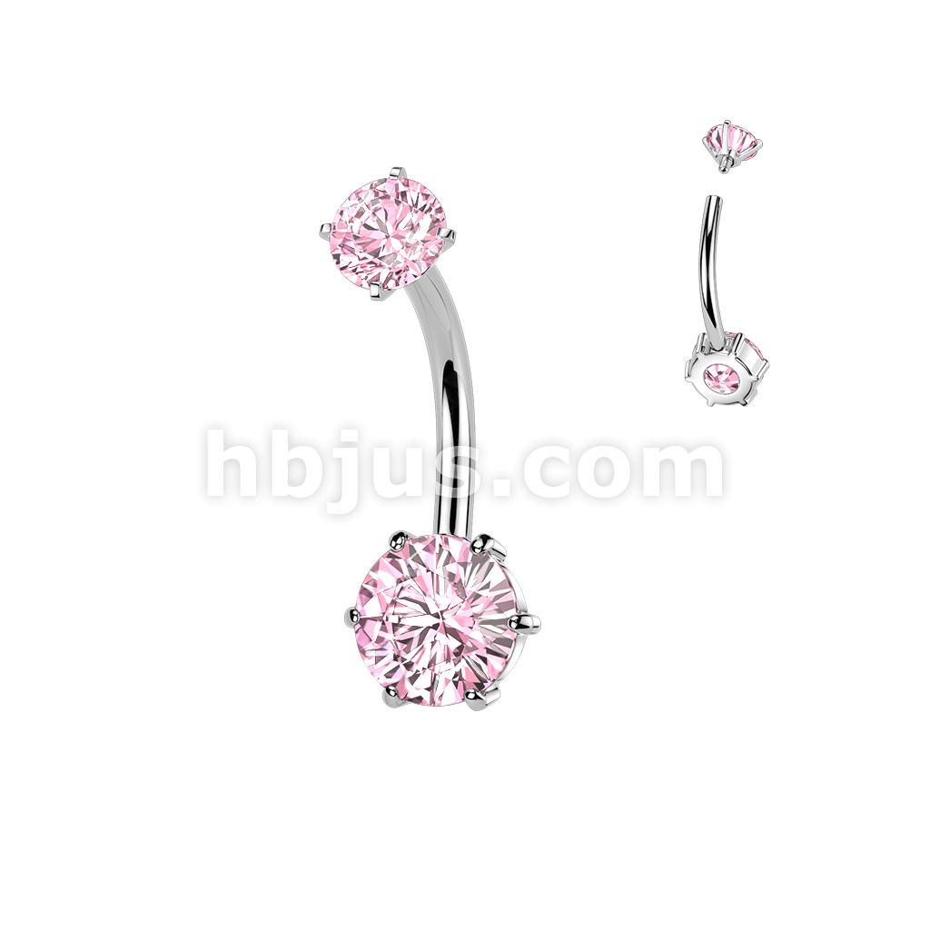 All 316L Internally Threaded 6-Prong Set Round CZ Belly Ring With CZ Top