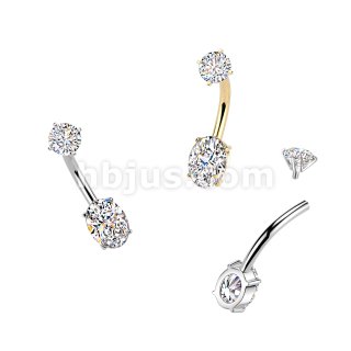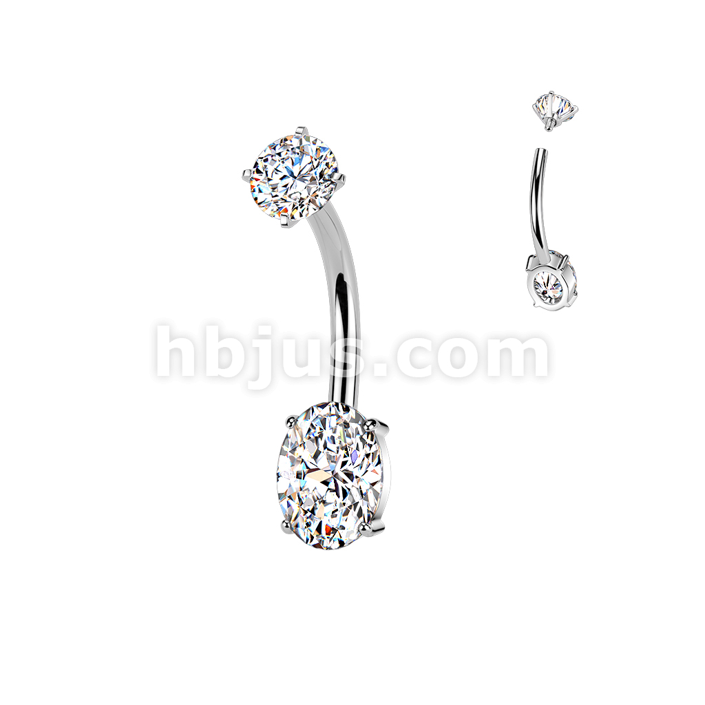 All 316L Internally Threaded Prong Set Oval CZ Belly Ring With CZ Top