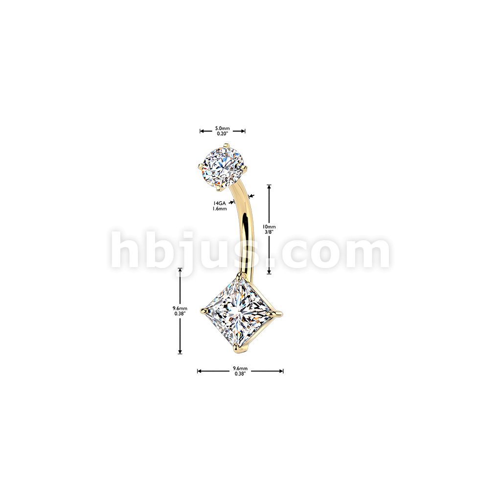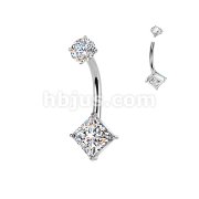 All 316L Internally Threaded Prong Set Diamond CZ Belly Ring With CZ Top