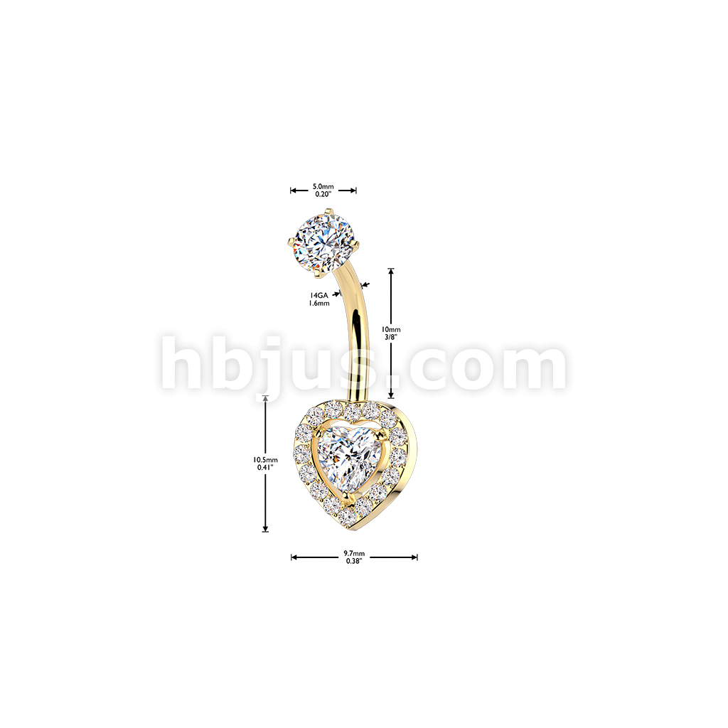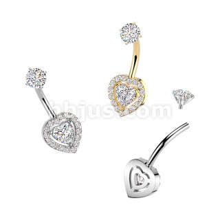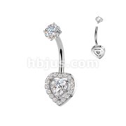 All 316L Internally Threaded Prong Set Heart & Pave CZ Belly Ring With CZ Top
