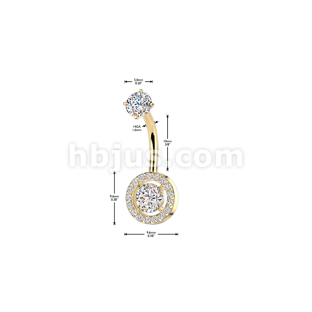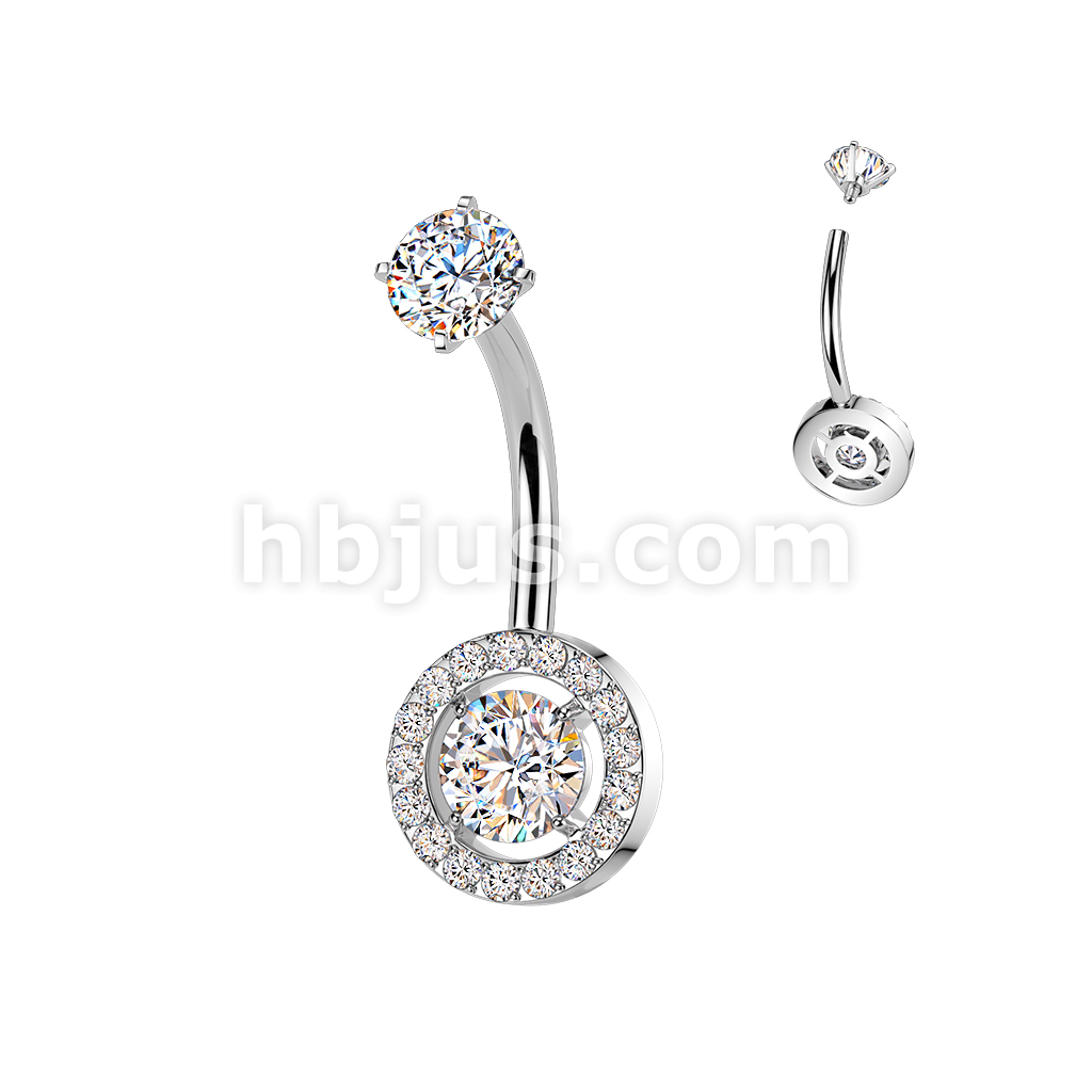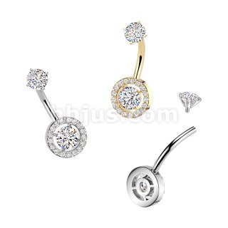 All 316L Internally Threaded Prong Set Round & Pave CZ Belly Ring With CZ Top