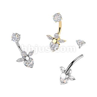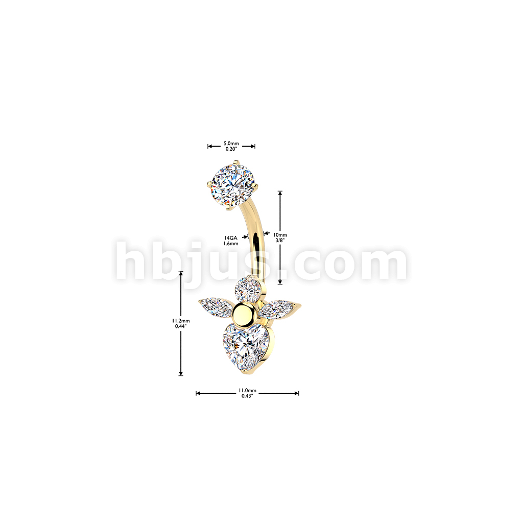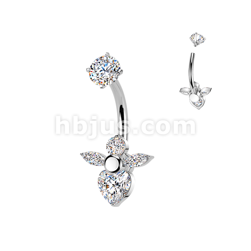 All 316L Internally Threaded Prong Set CZ Angel Belly Ring With CZ Top