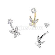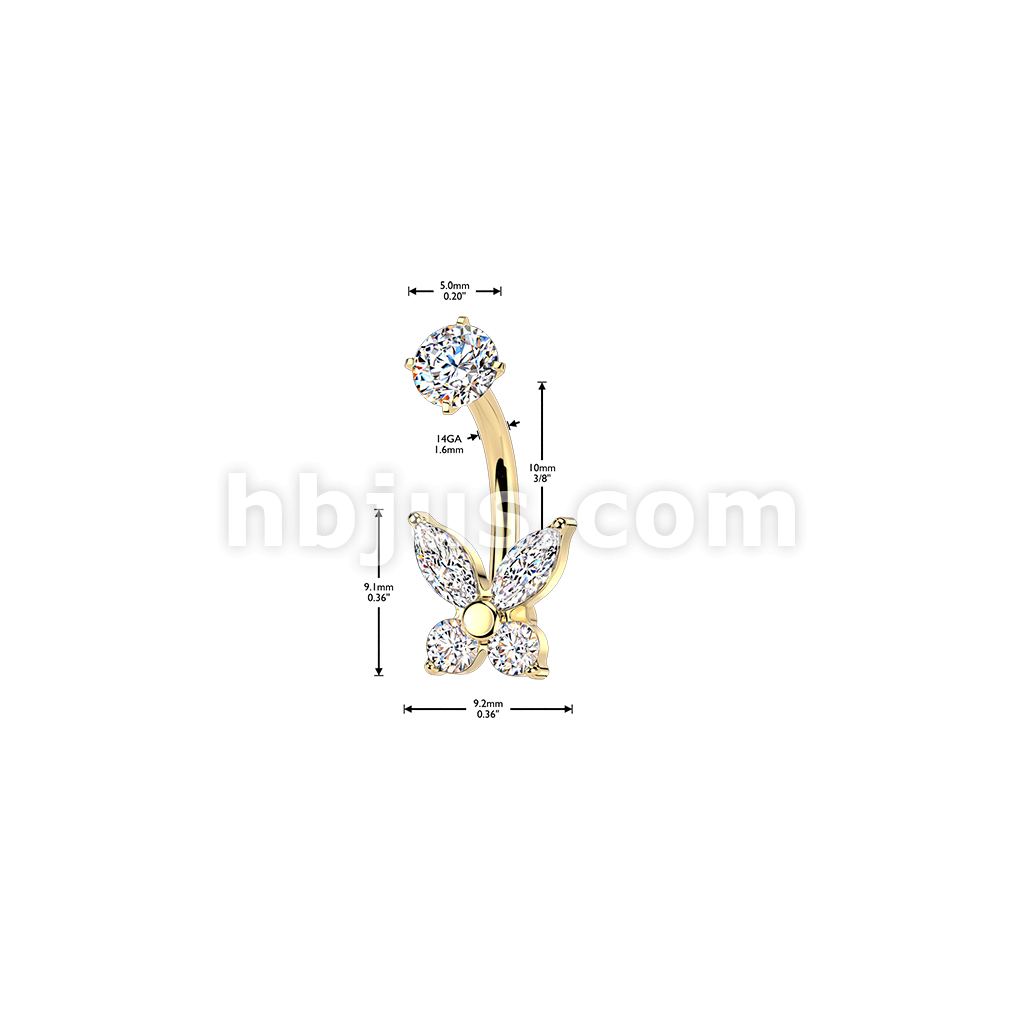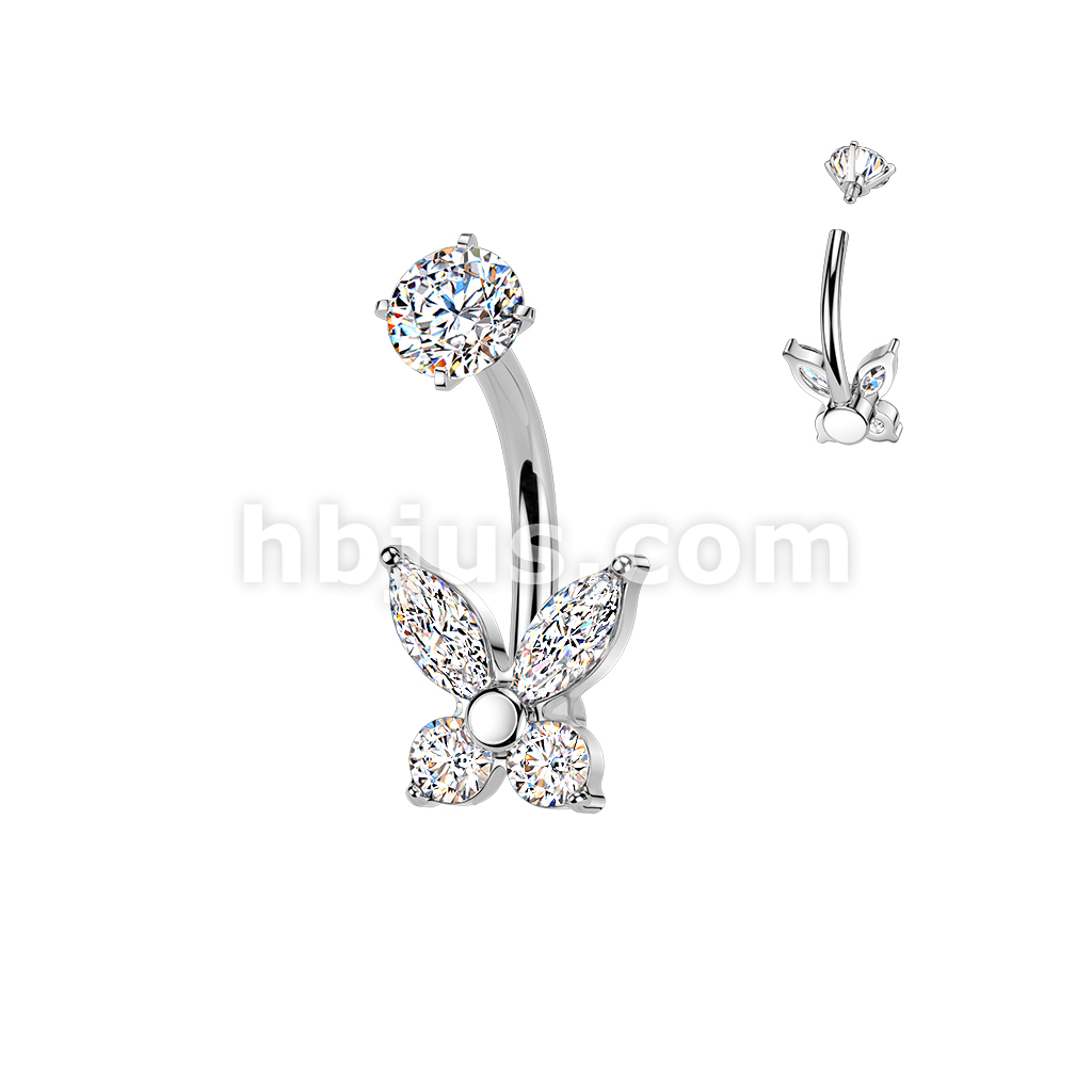All 316L Internally Threaded Prong Set Butterfly CZ Belly Ring With CZ Top
