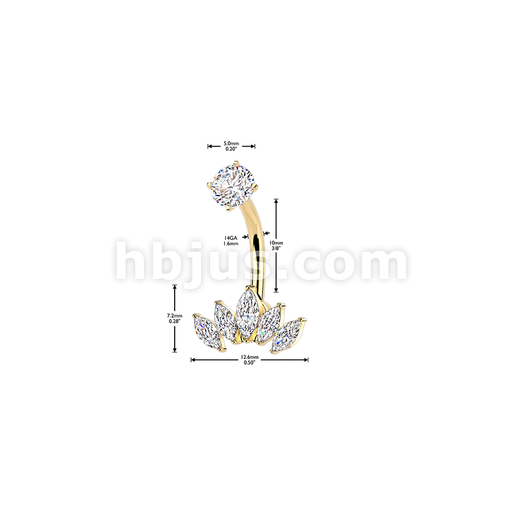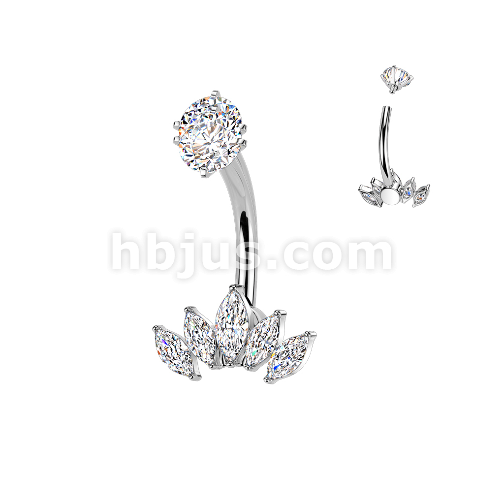All 316L Internally Threaded Prong Set Marquise CZ Fan Belly Ring