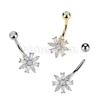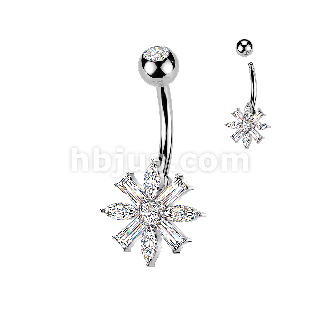 316L Belly Ring With Marquise & Baguette CZ Flower and Press Fit CZ Top