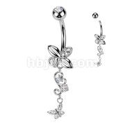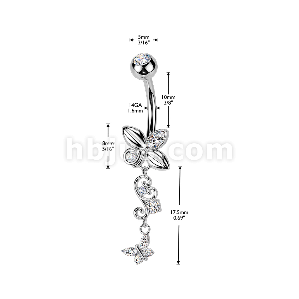 316L Belly Ring With Butterfly & Filigree Butterfly Dangle