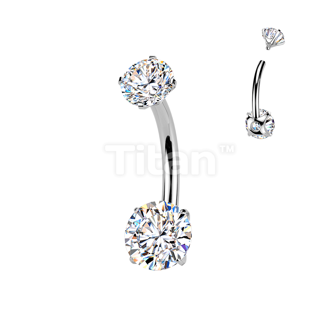 Titanium Internally Threaded Double Prong Set Moissanite Belly Button Ring
