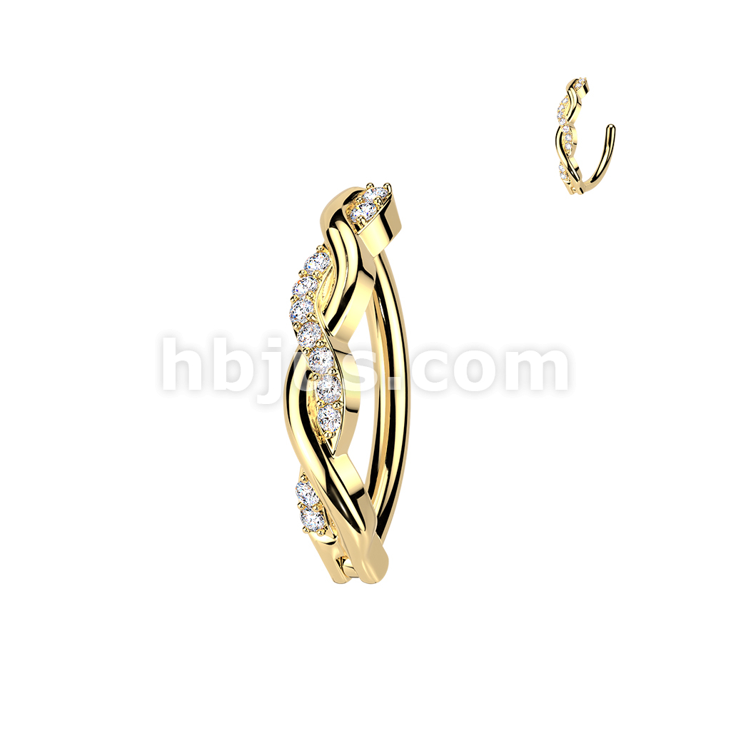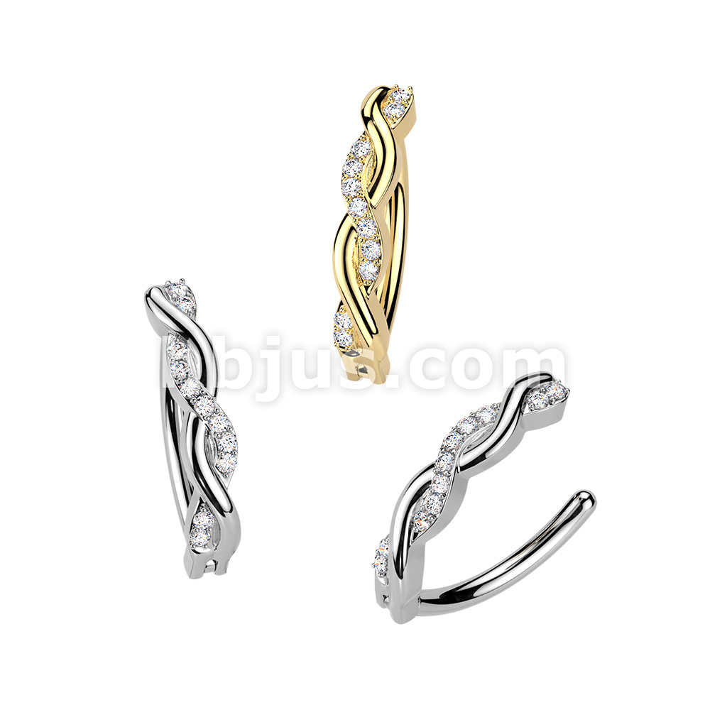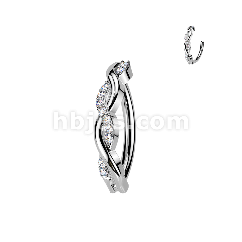 316L Surgical Steel Pave CZ Twist Hinged Belly Button Clicker Ring