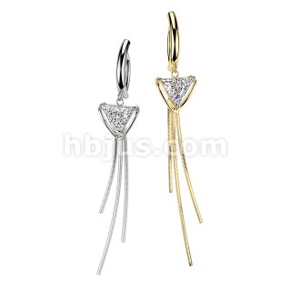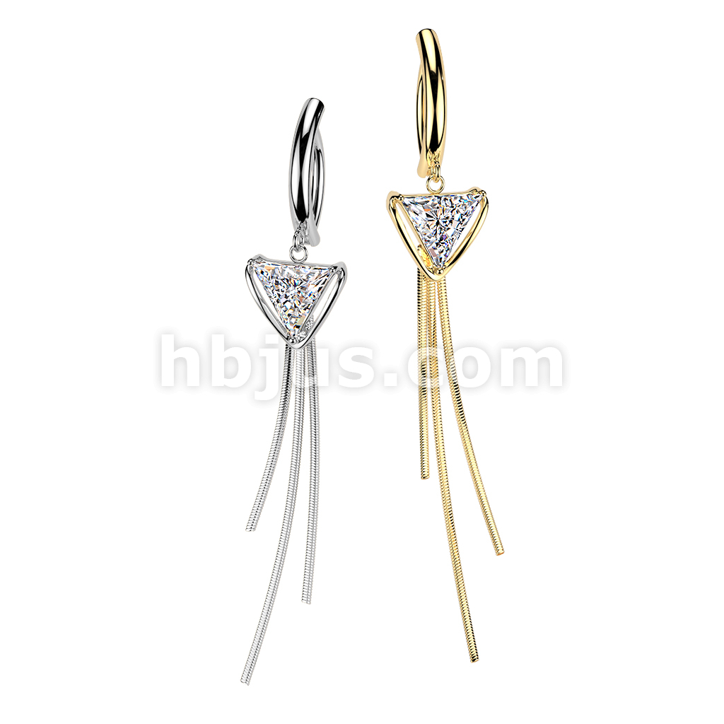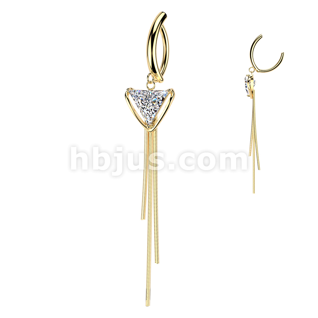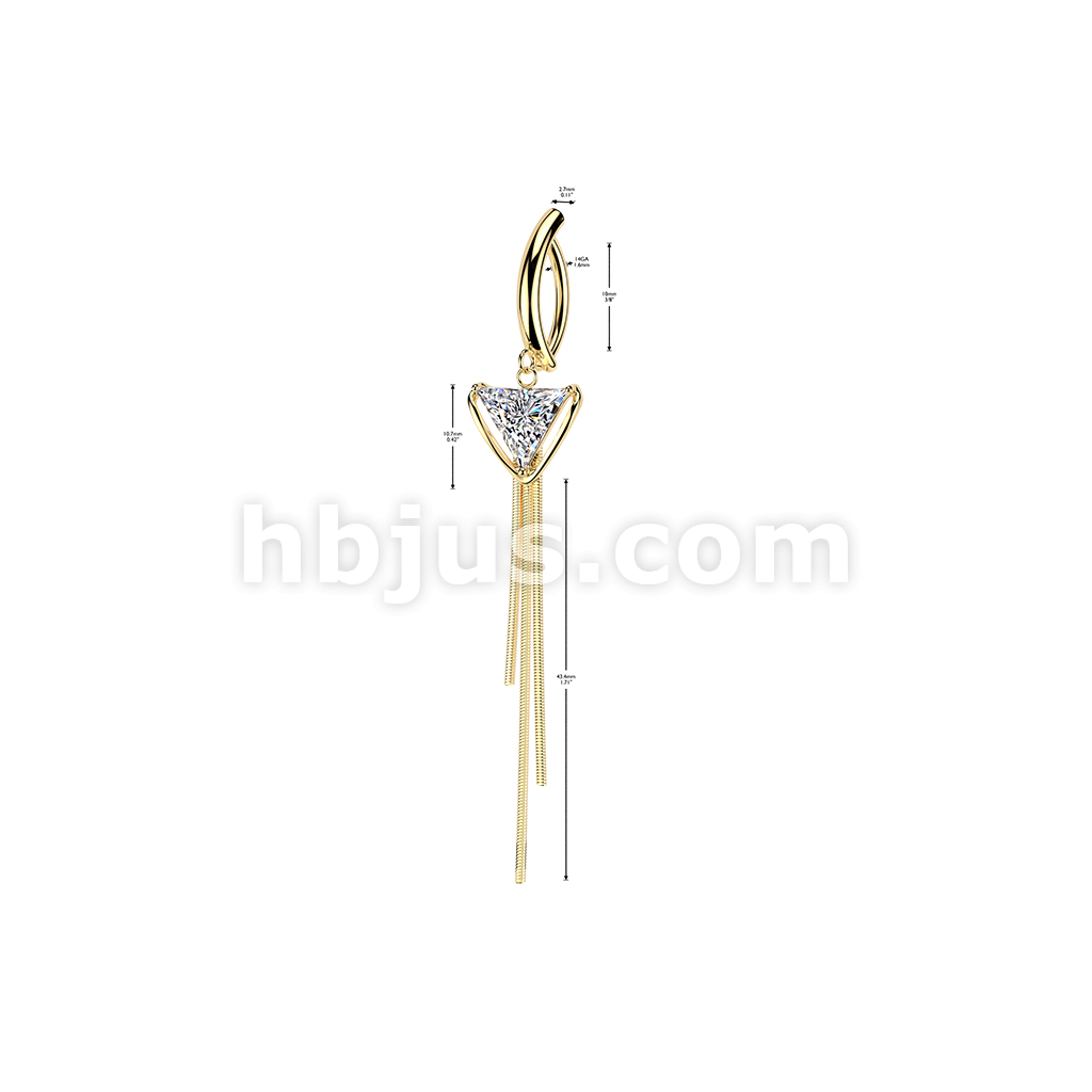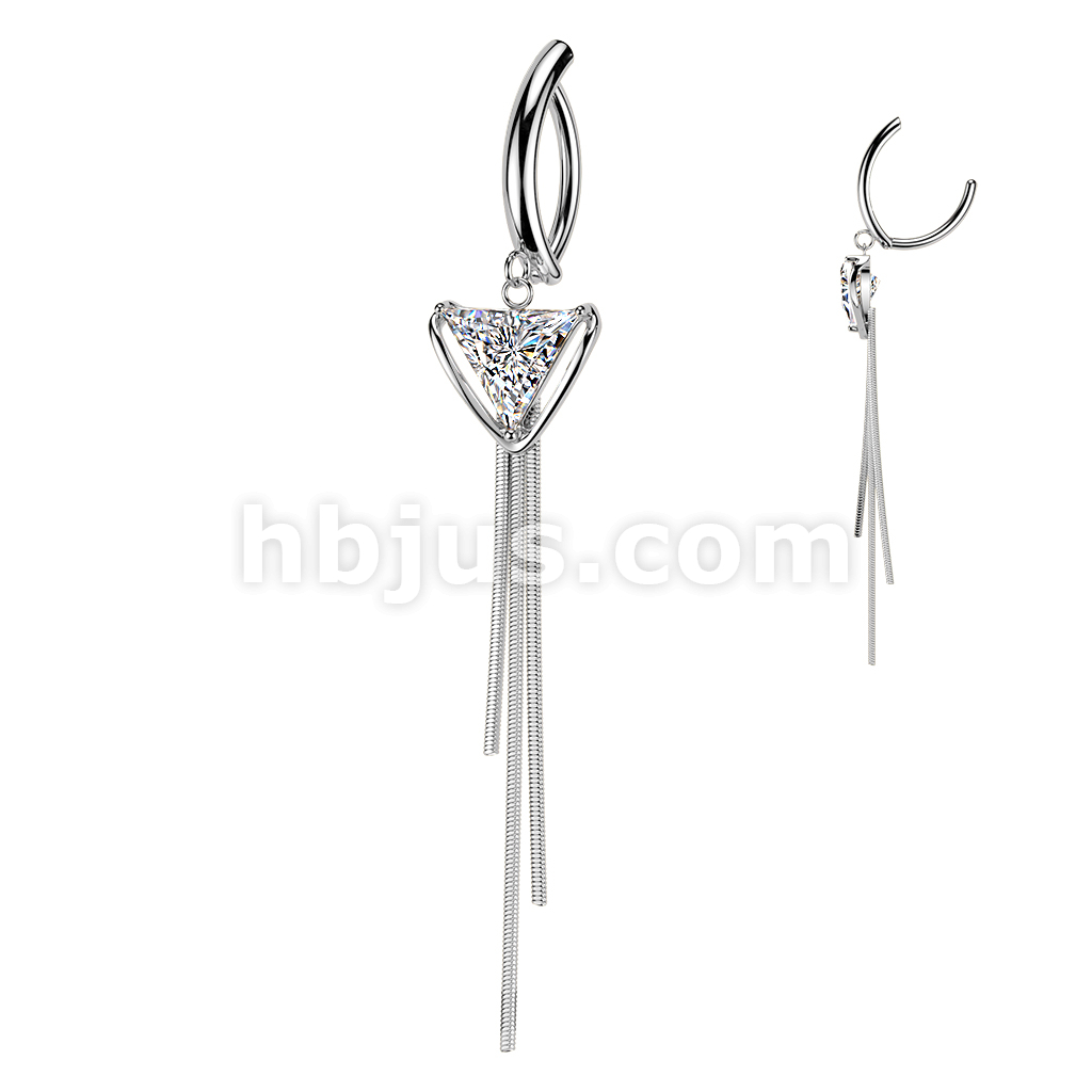 316L Hinged Belly Button Clicker Ring With Triangle CZ & Triple Chain Dangle