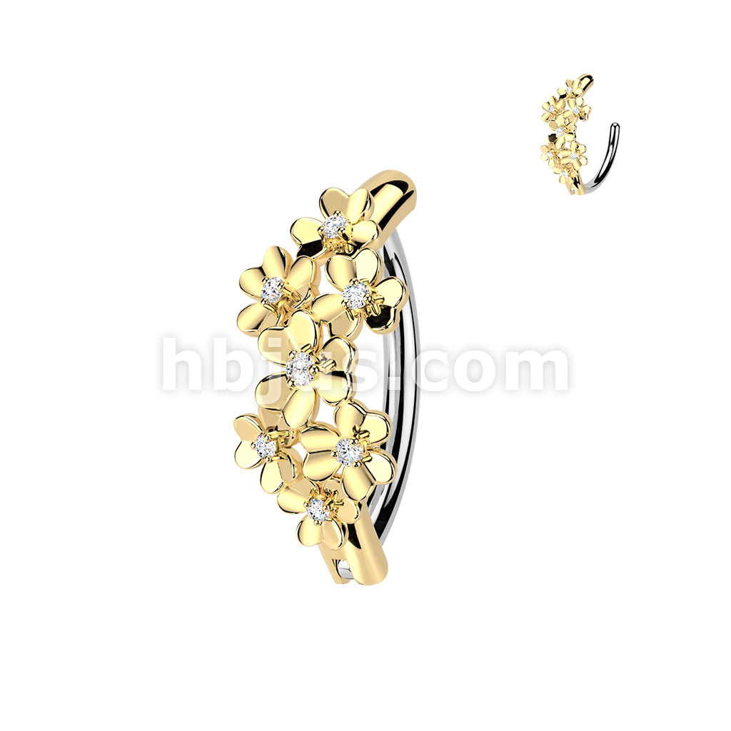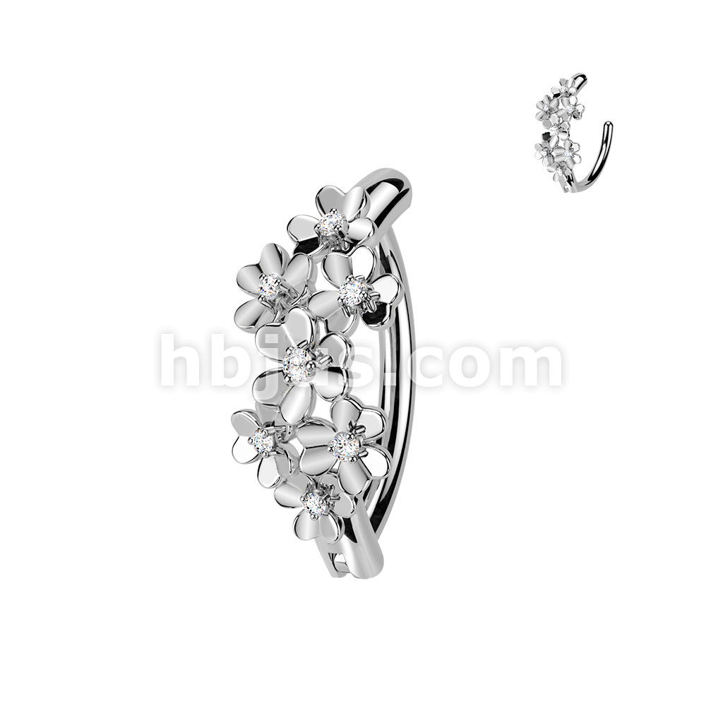 316L Hinged Belly Button Ring With CZ Centered Flowers