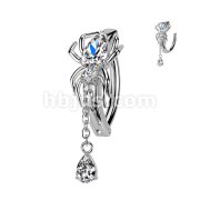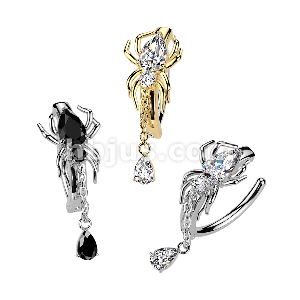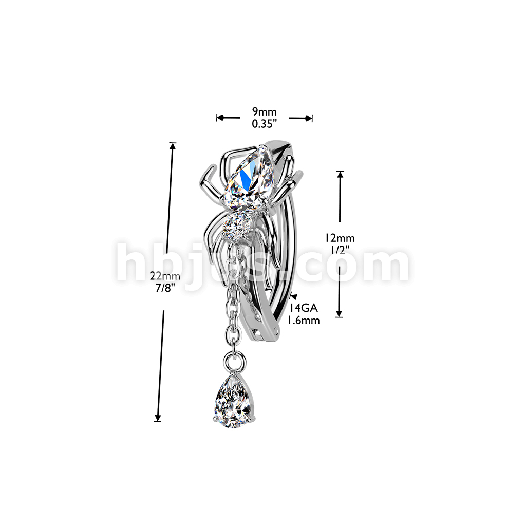 316L Hinged CZ Spider Belly Button Ring With Teardrop Dangle