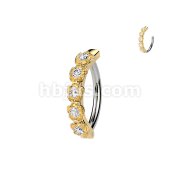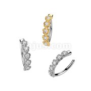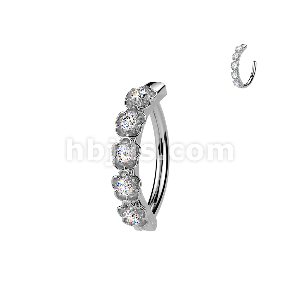 316L Hinged Belly Button Ring Lined With CZ Centered Flowers