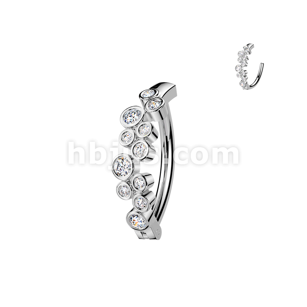 316L Hinged Belly Button Ring With Round CZ Bubbles