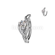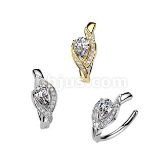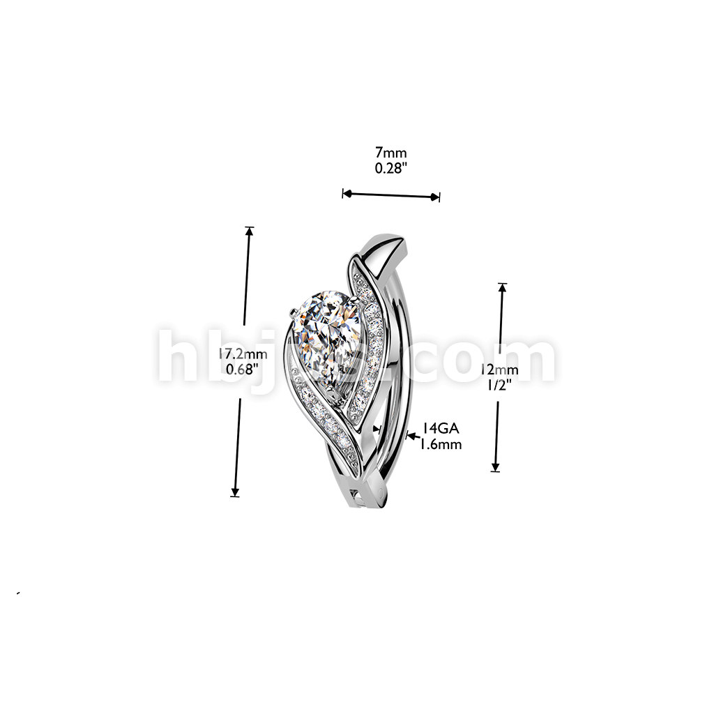 316L Hinged Belly Button Ring With Pave CZ Edge & Large Teardrop CZ
