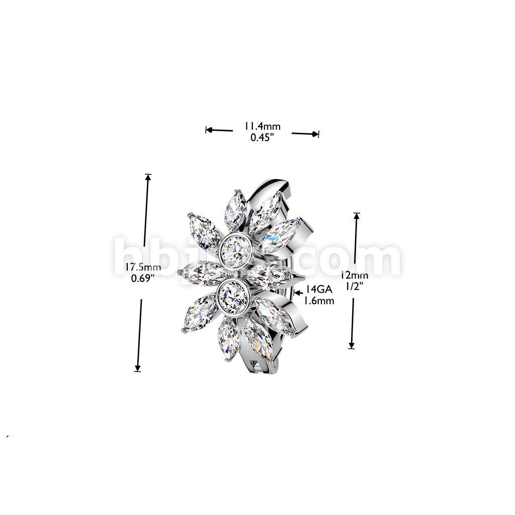 316L Hinged Belly Button Ring With Marquise CZ Cluster