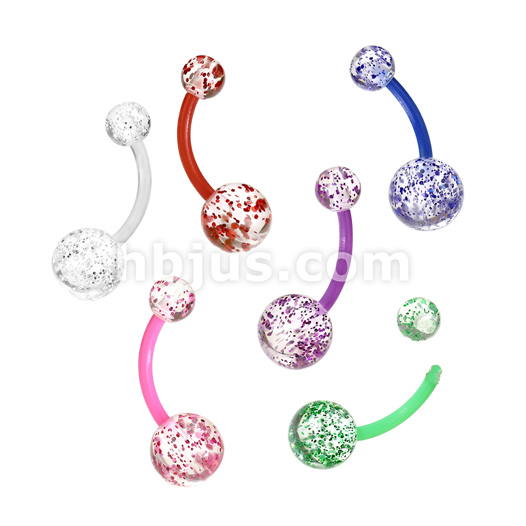 24 Pc Assorted Pack Bioflex Belly Rings With Ultra Glitter Acrylic Balls (6 Colors)