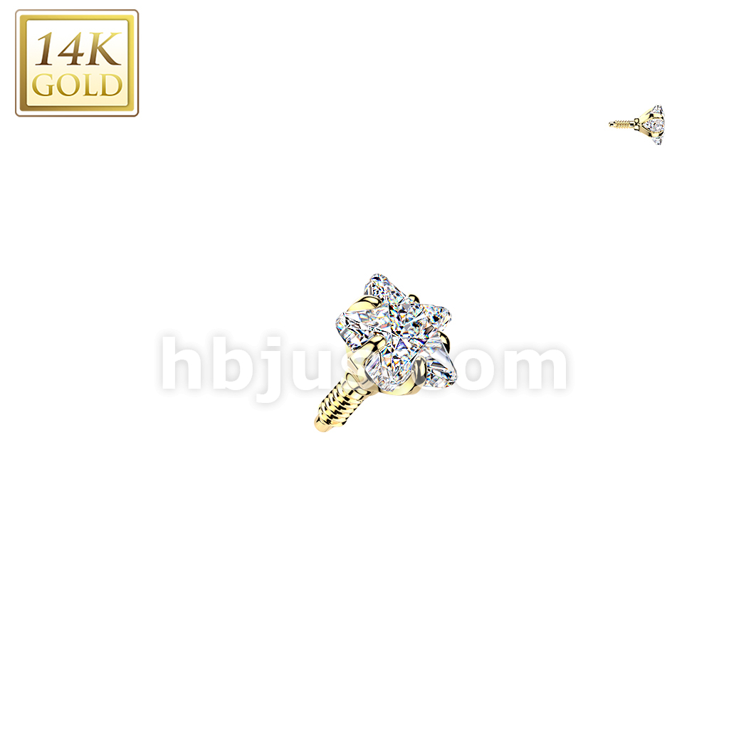 14K Gold Internally Threaded Prong Set Star CZ Top