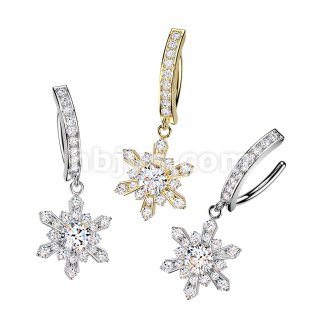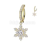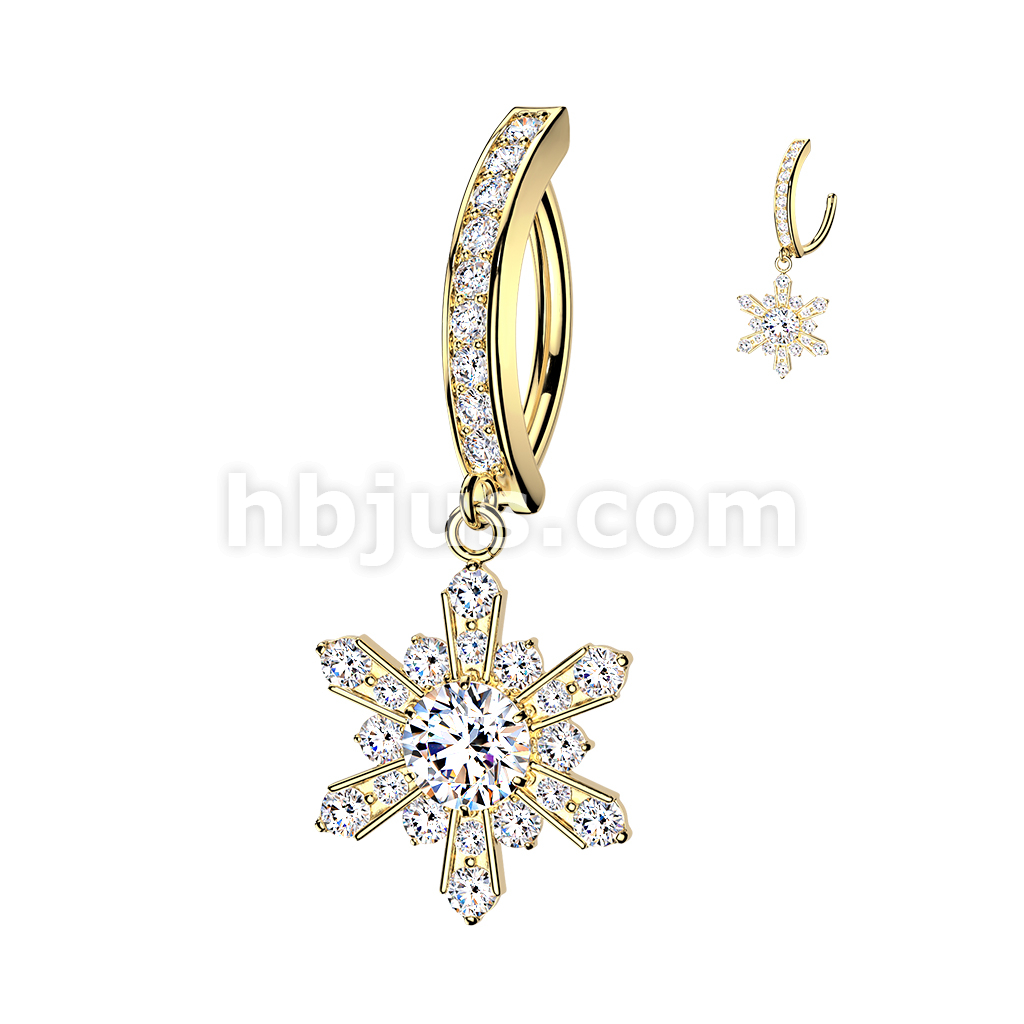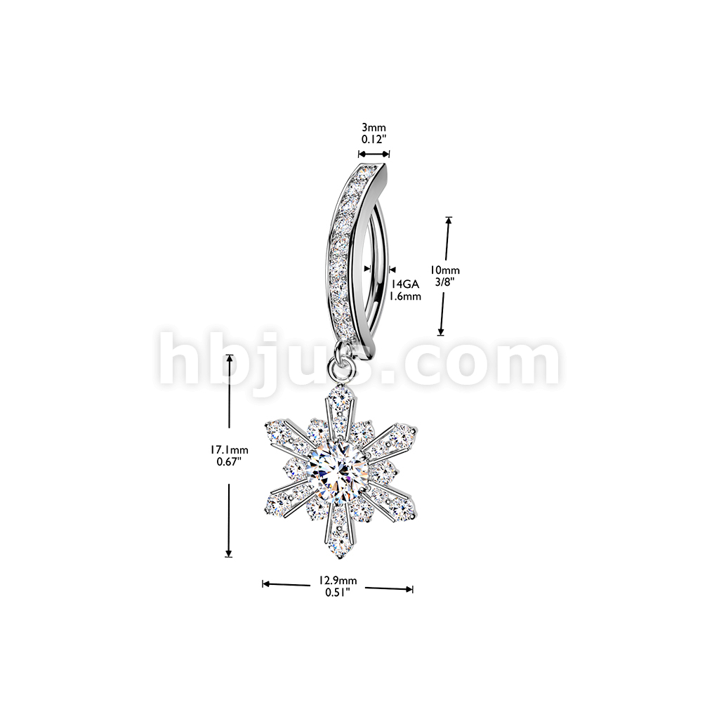 316L Hinged Pave CZ Belly Button Clicker Ring With CZ Snowflake Dangle