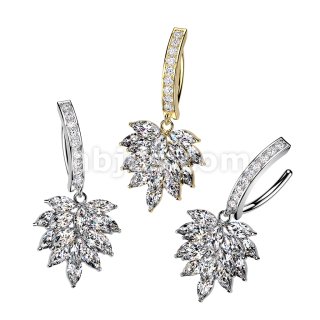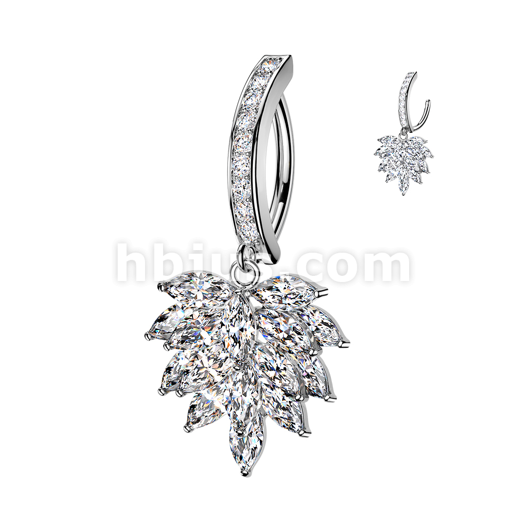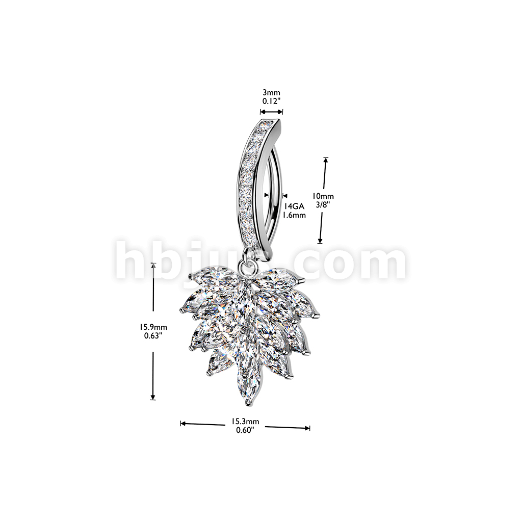 316L Hinged Pave CZ Belly Button Clicker Ring With Marquise CZ Cluster Dangle