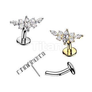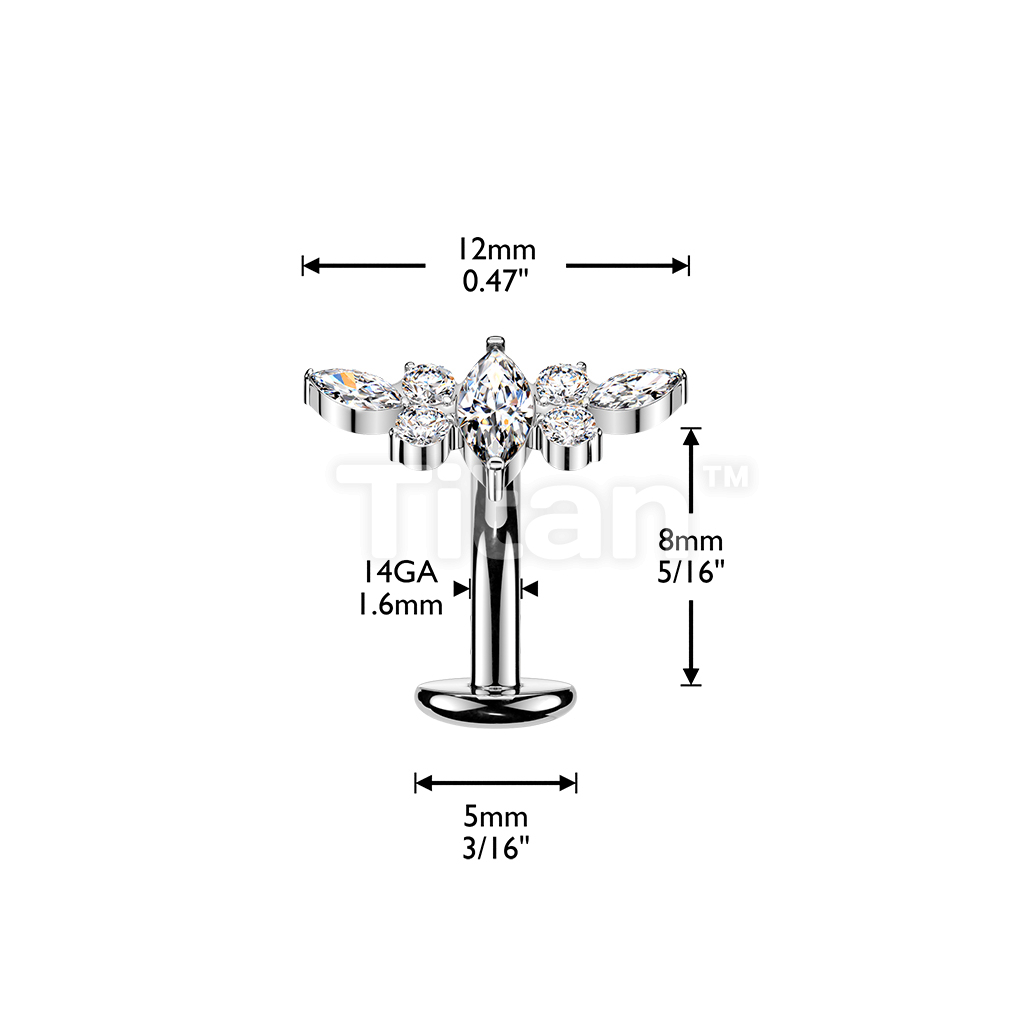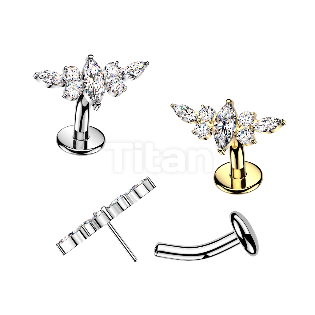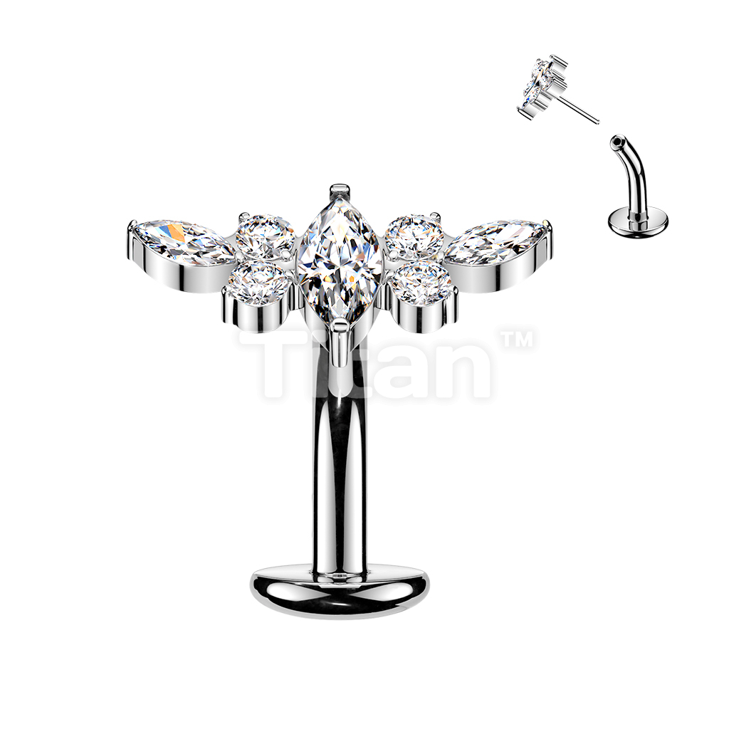 Titanium Threadless Floating Base Belly Button Ring With Marquise CZ Center CZ Wing Top