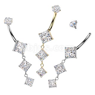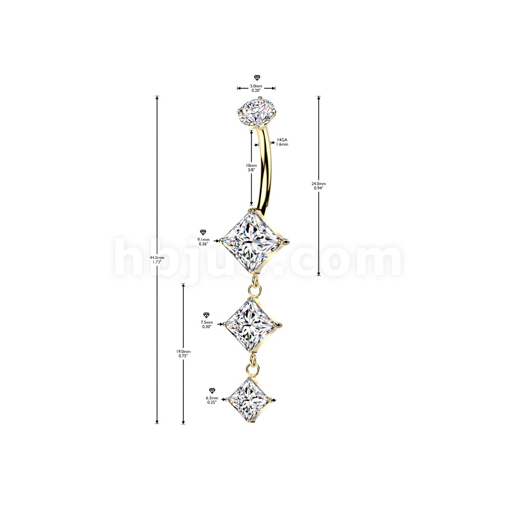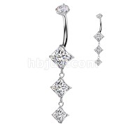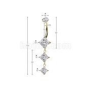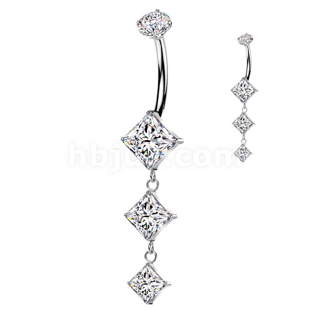 Titanium Internally Threaded Belly Ring With Descending Triple Diamond CZ Dangle