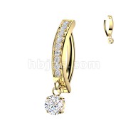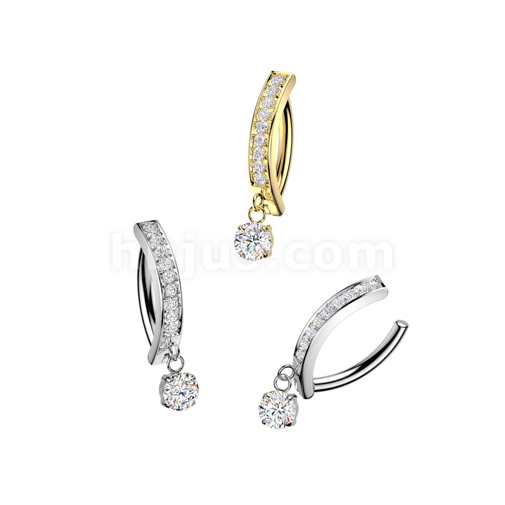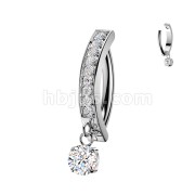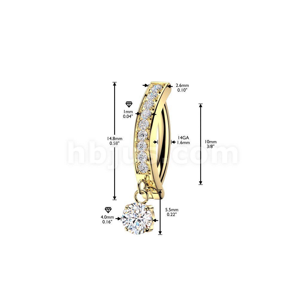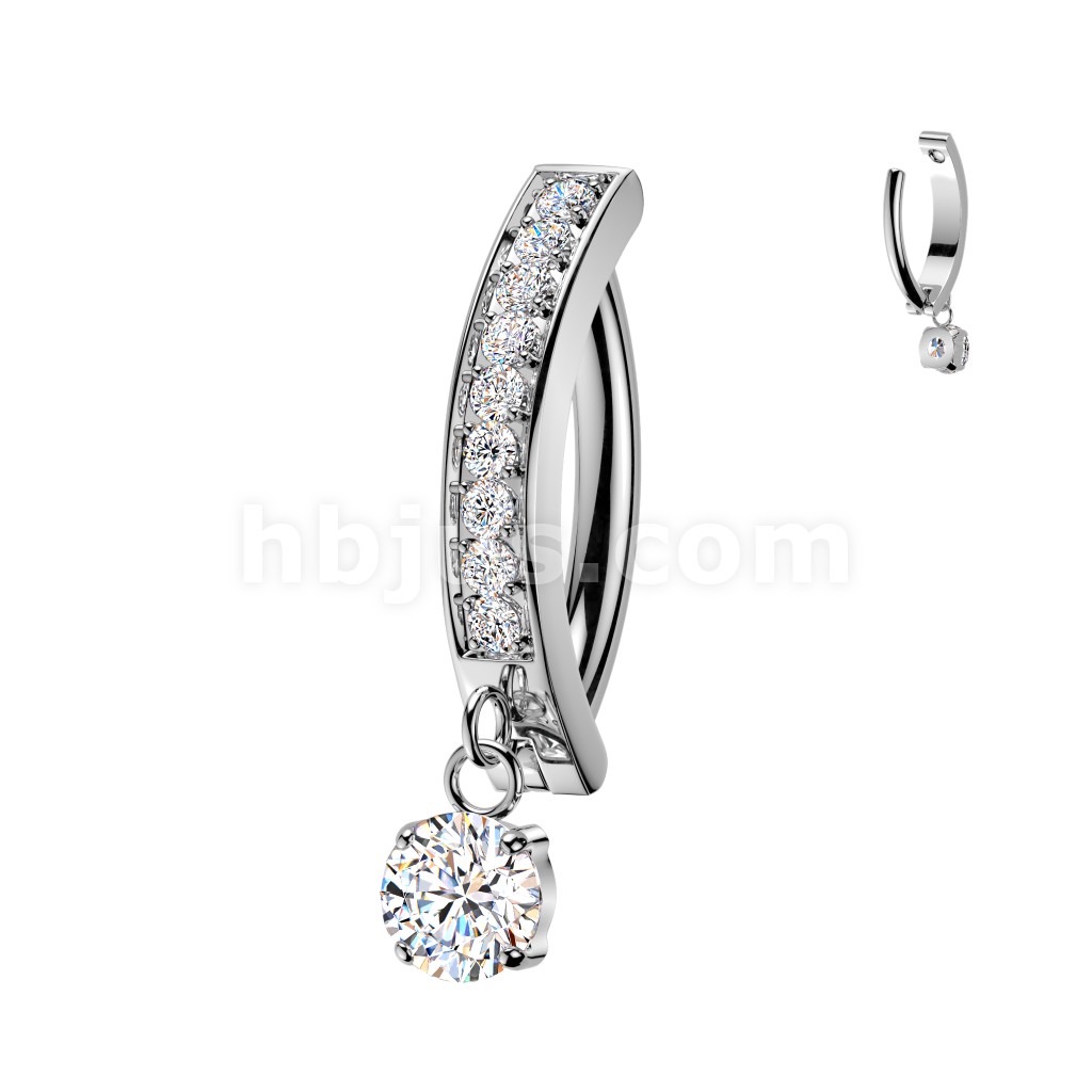 Titanium Hinged Hoop Belly Ring With CNC Set CZs & Prong Set Dangle CZ
