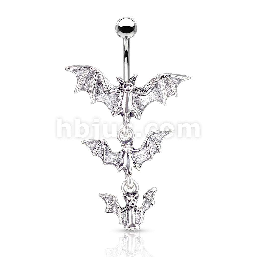 316L Surgical Steel Gothic Tri-Vampire Bats Dangle Belly Button Ring