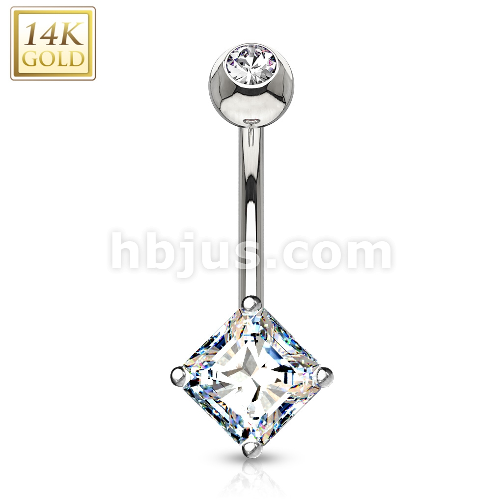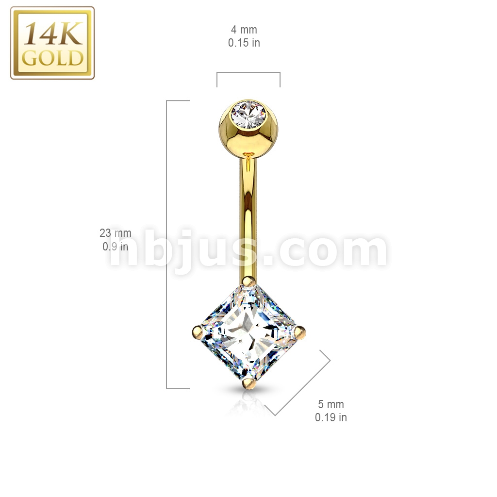 14K Gold Navel Ring With Square Princess Cut CZ