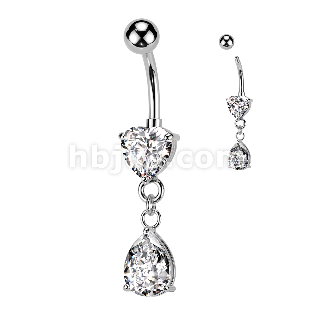 316L Surgical Steel Heart CZ Prong Set Pear CZ Dangle Belly Button Ring