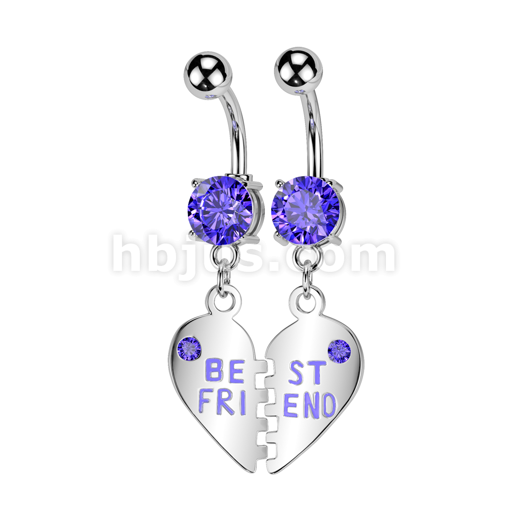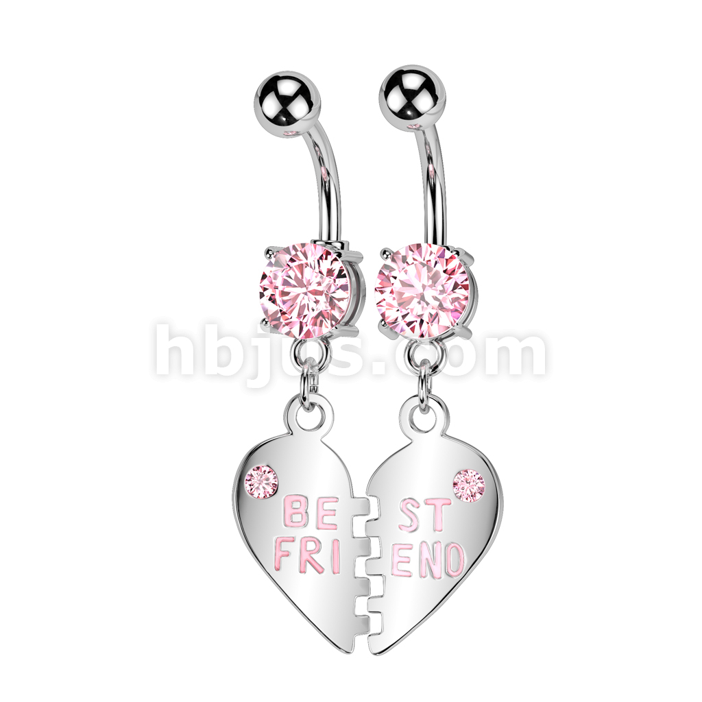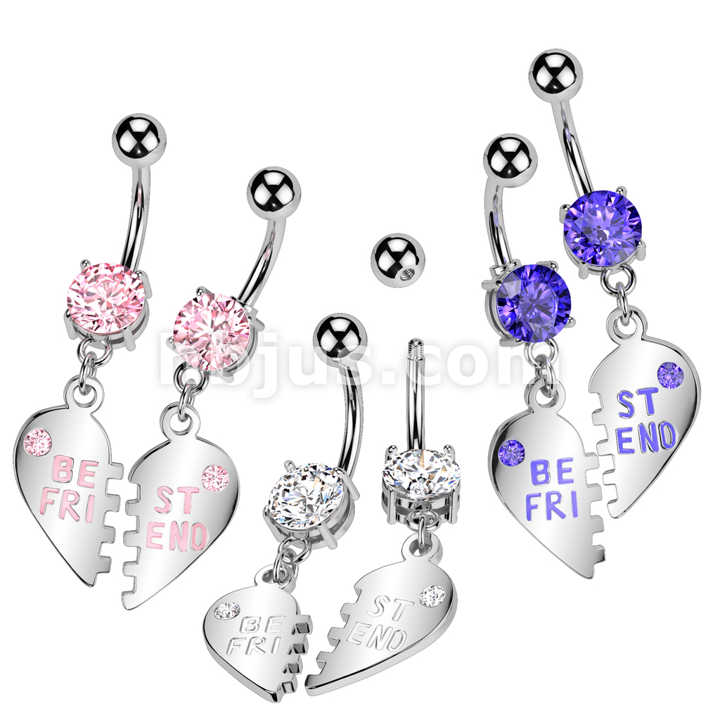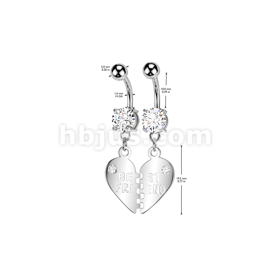 Pair of "Best Friend" Charm Pendent CZ Navel Ring