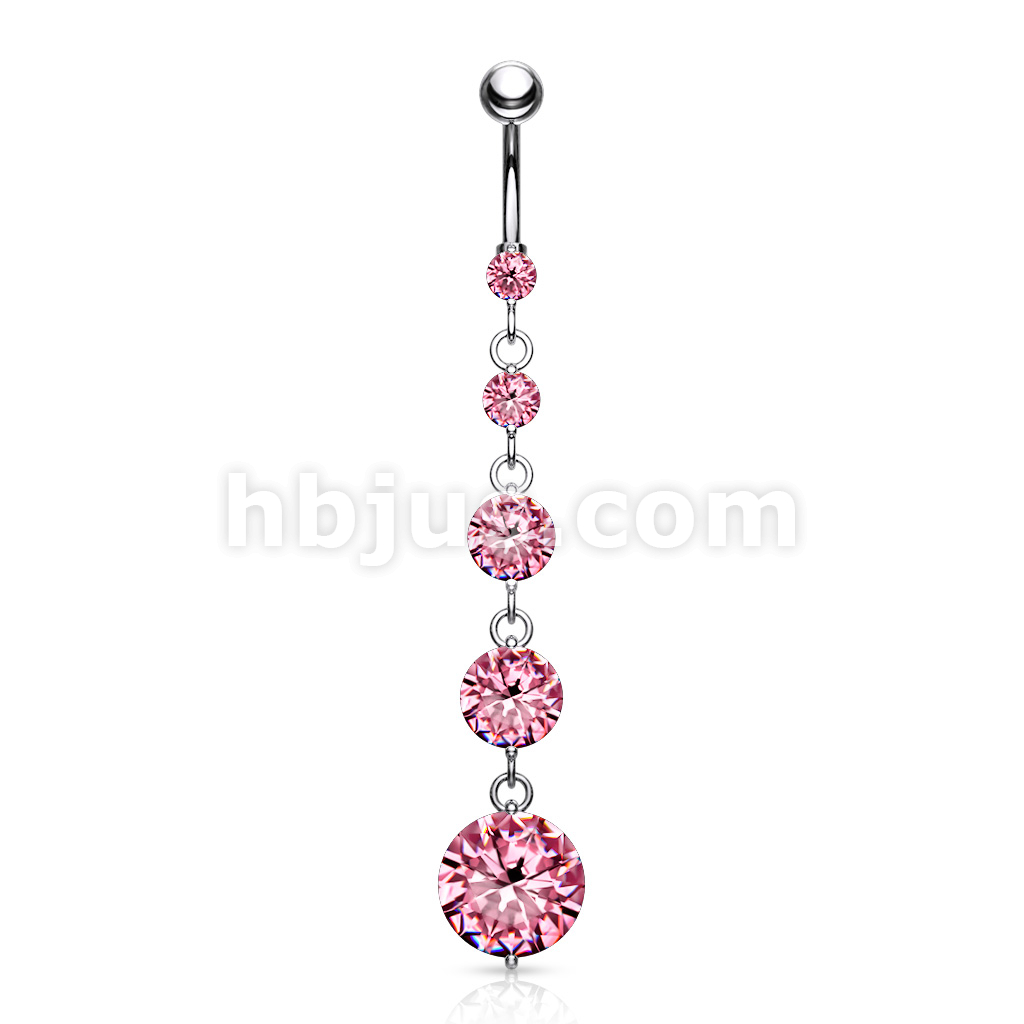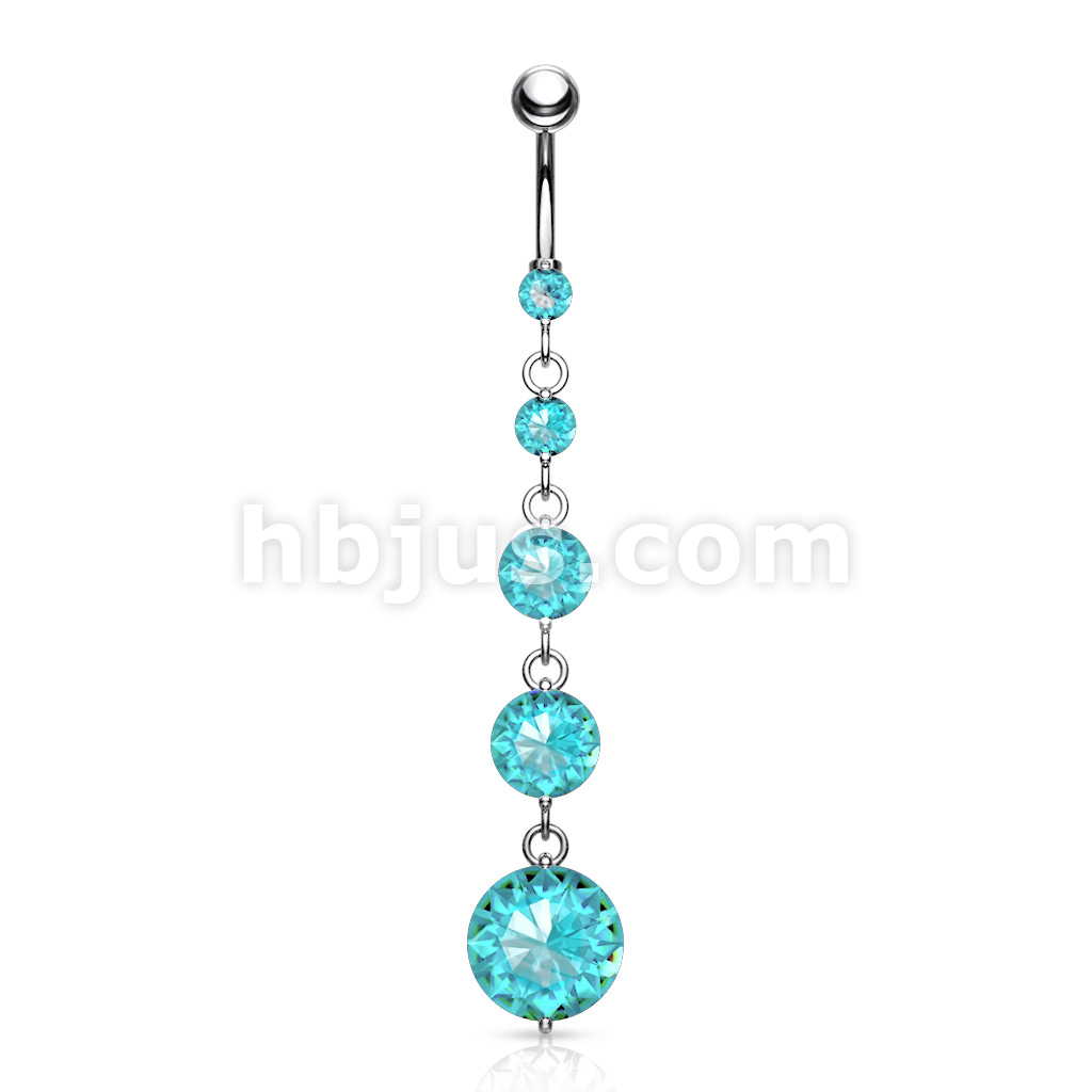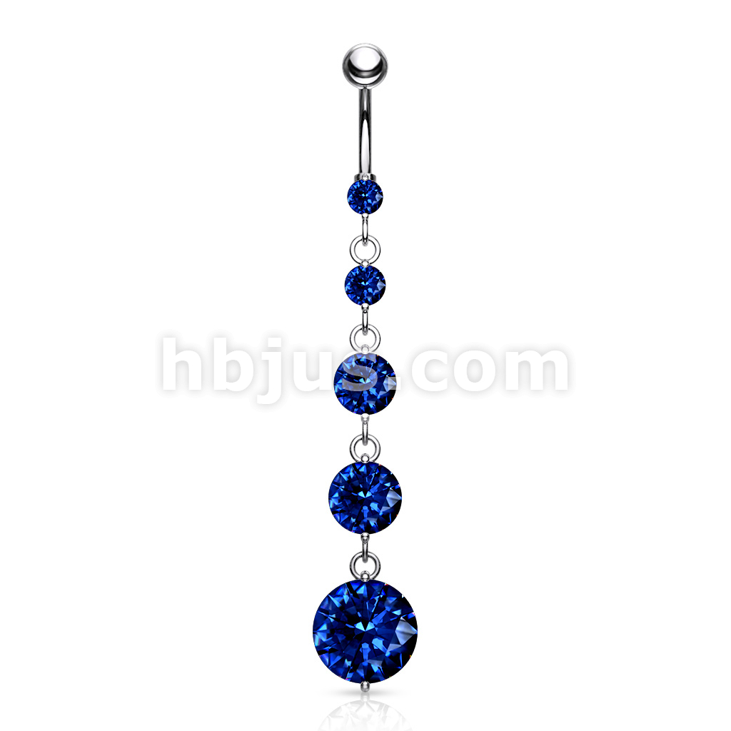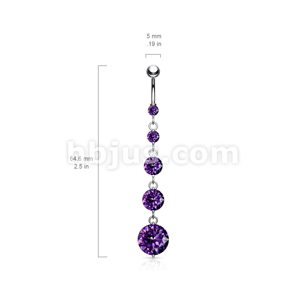 316L Surgical Steel 5 Round Solitare CZ Vertical Drop Belly Button Ring