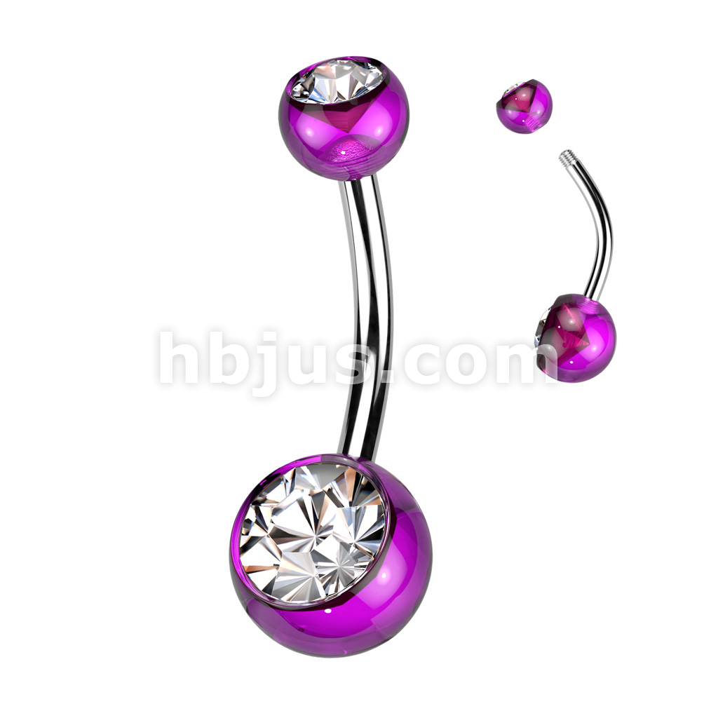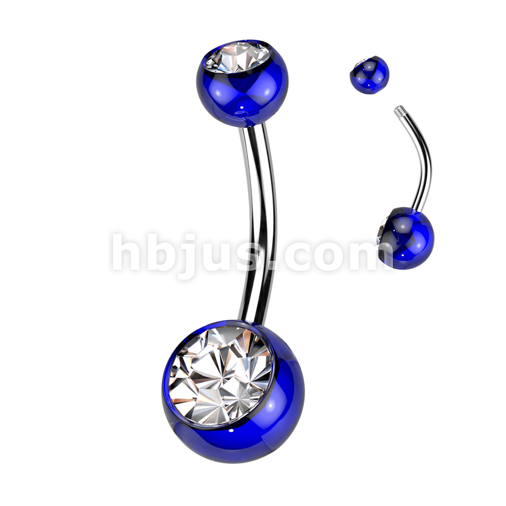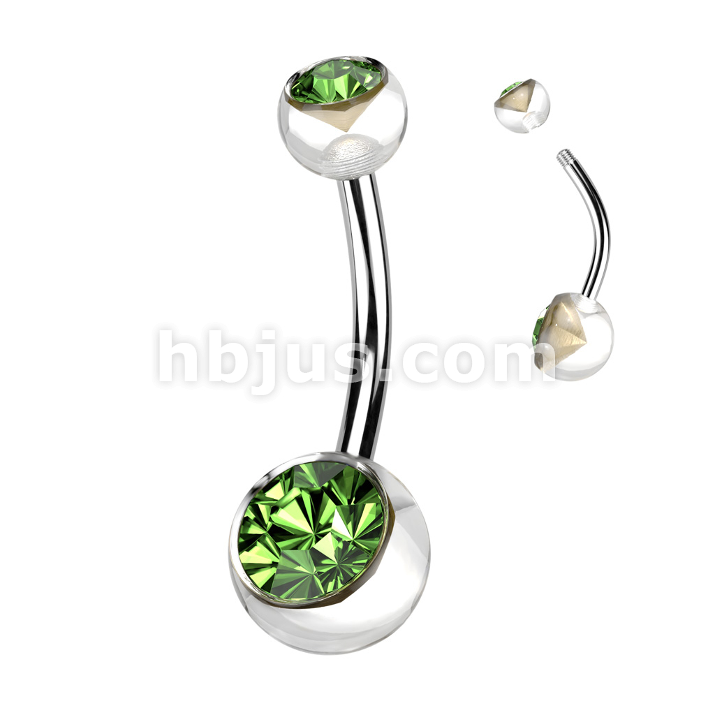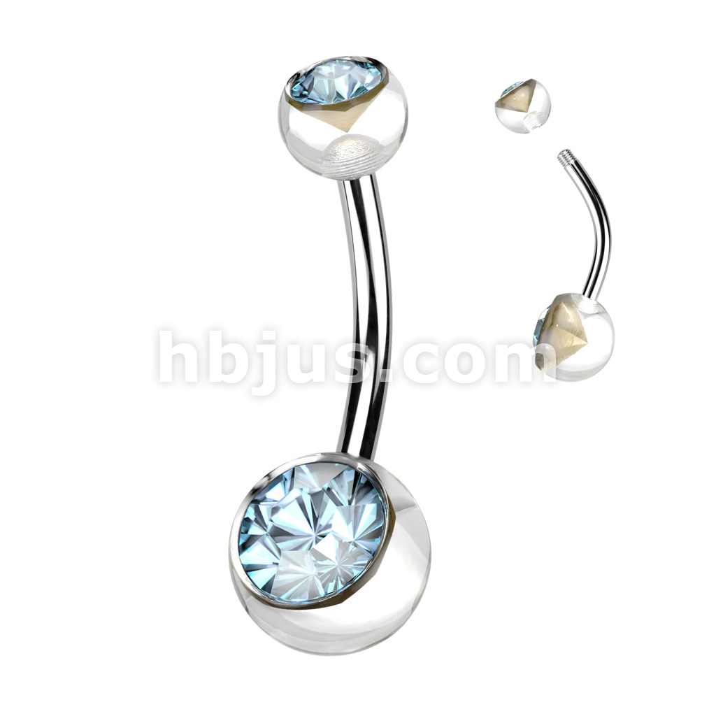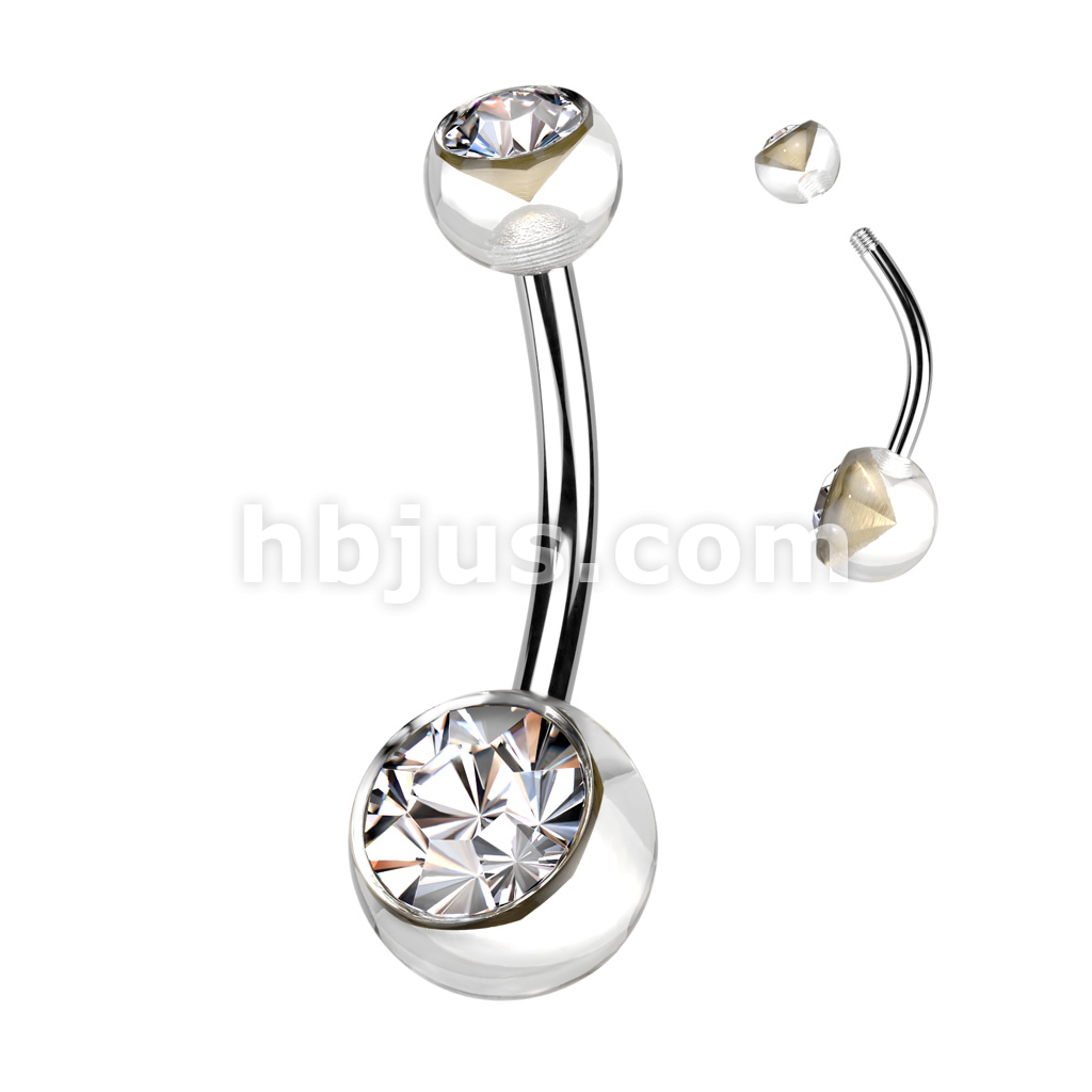 Acrylic Double Jeweled Belly Ring With 316L Surgical Steel Curved Bar