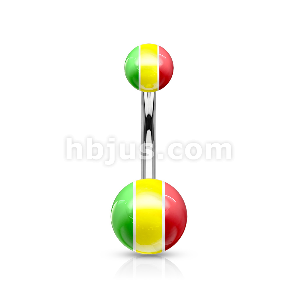 316L Surgical Steel Navel rings with UV Light Reactive Acrylic Stripe balls.