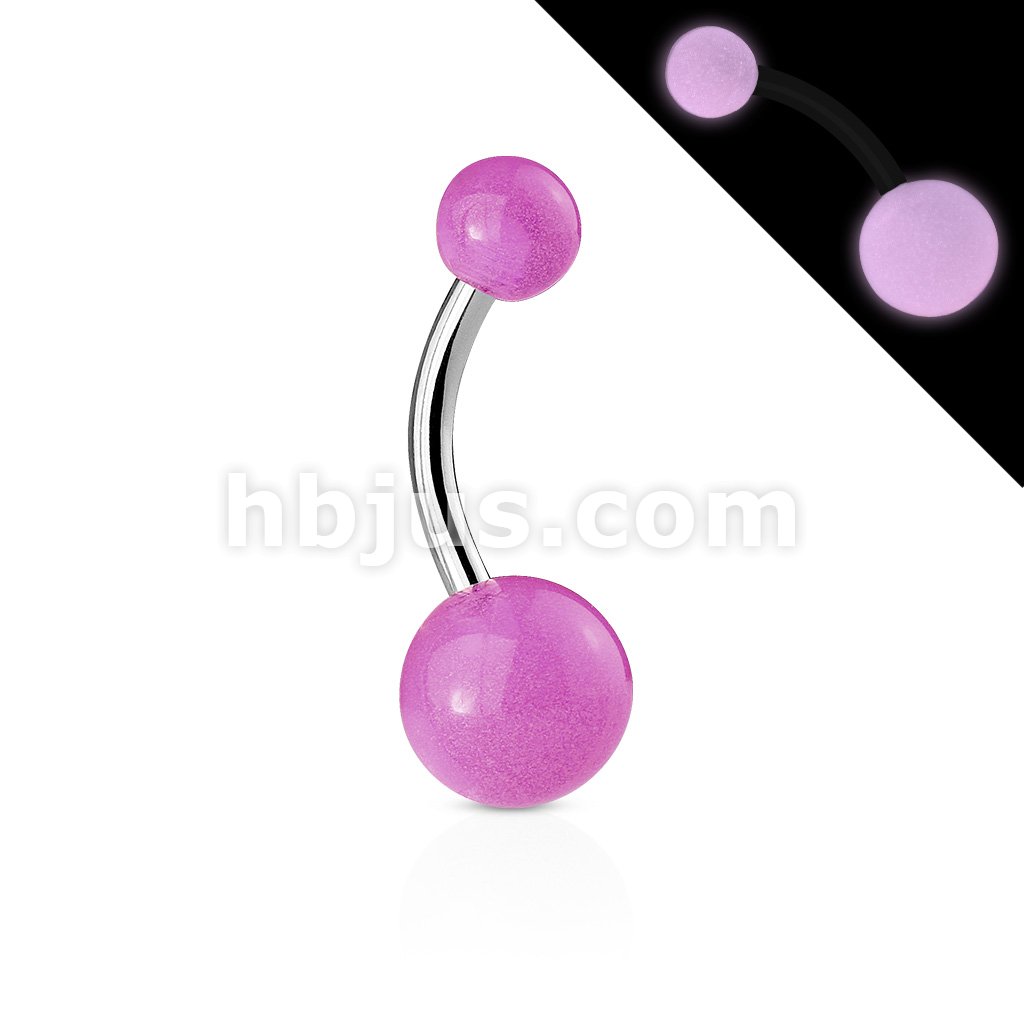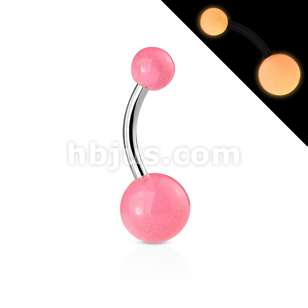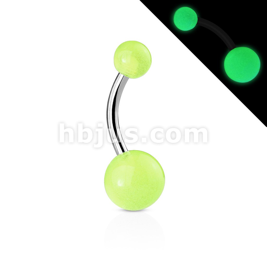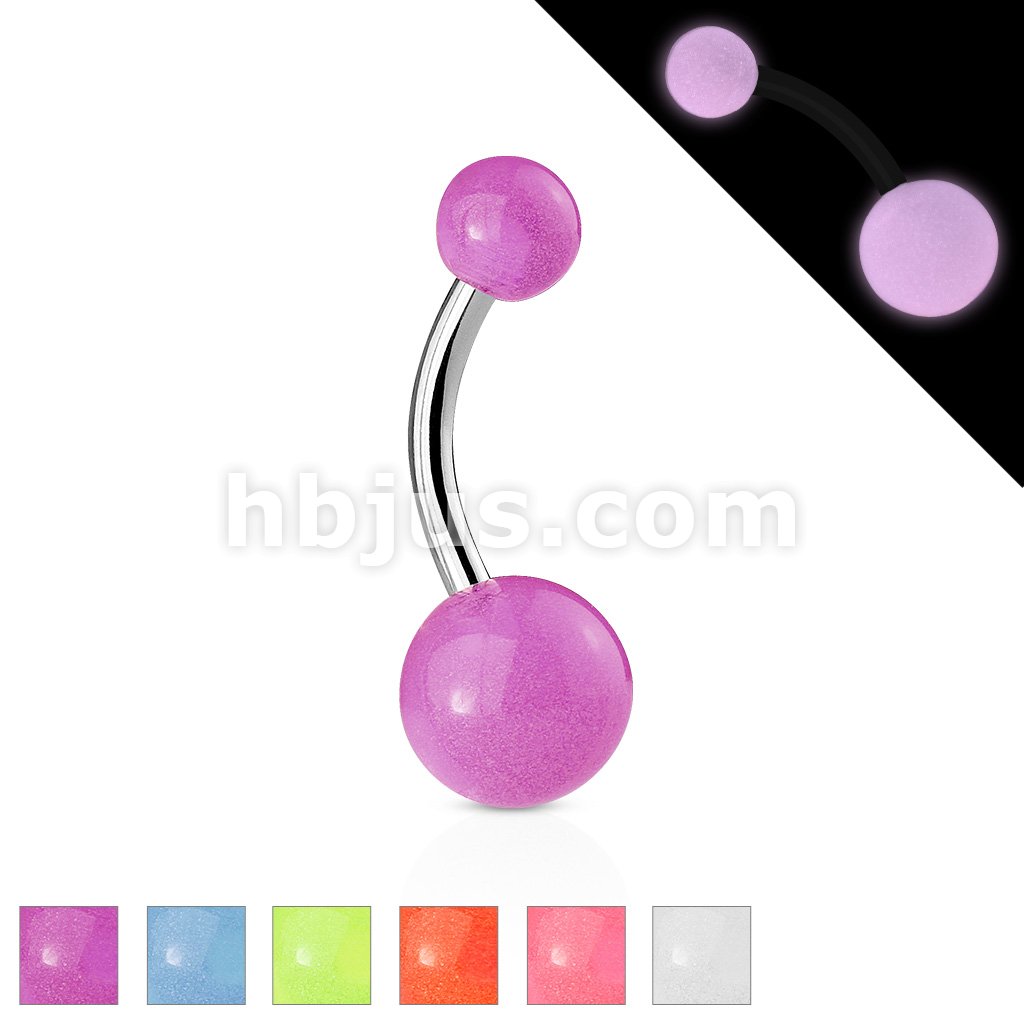 316L Surgical Stainless Steel Navel Rings with Glow In The Dark Balls