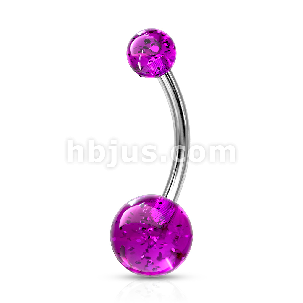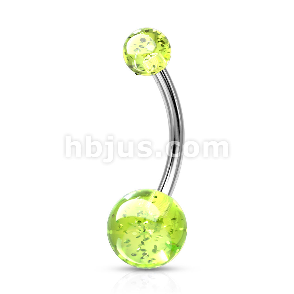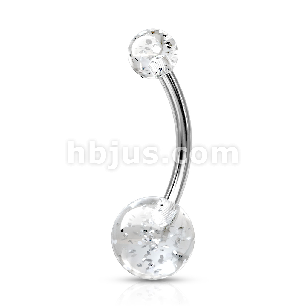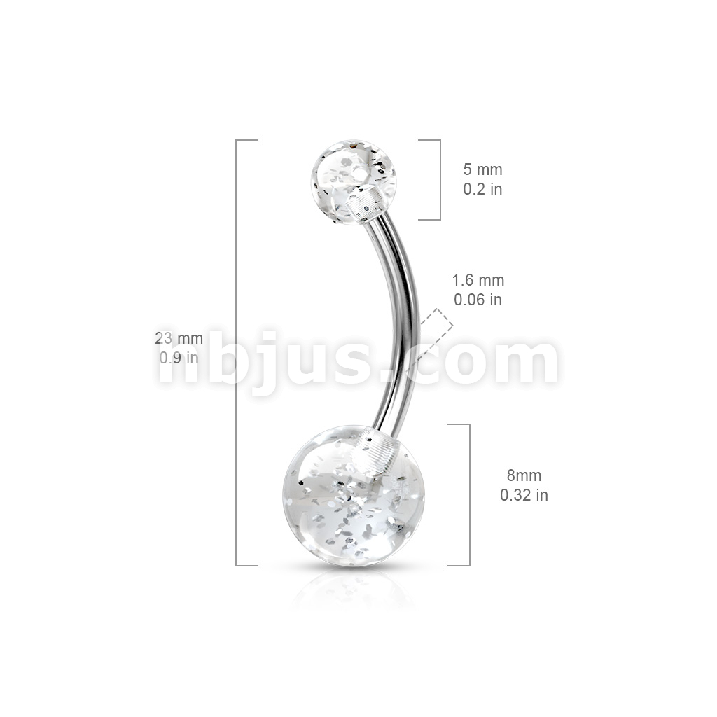 Glitter Acrylic Ball 316L Surgical Stainless Steel Navel Ring