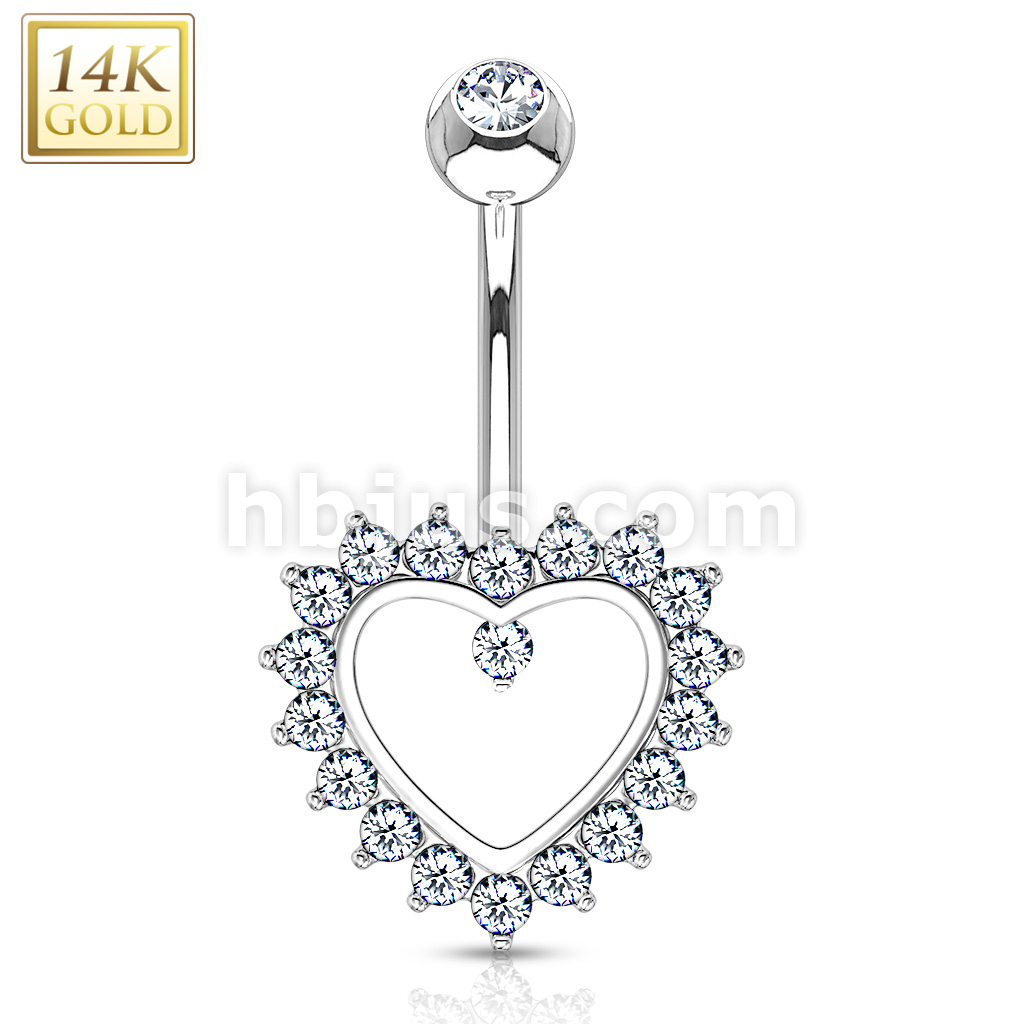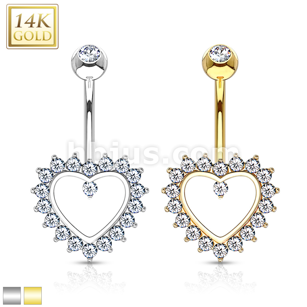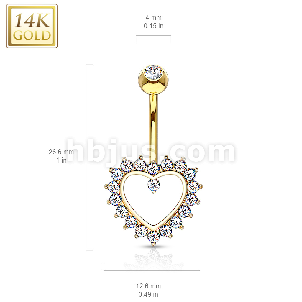 14K Gold Heart Gem Paved Navel Belly Button Ring