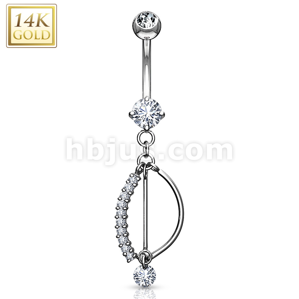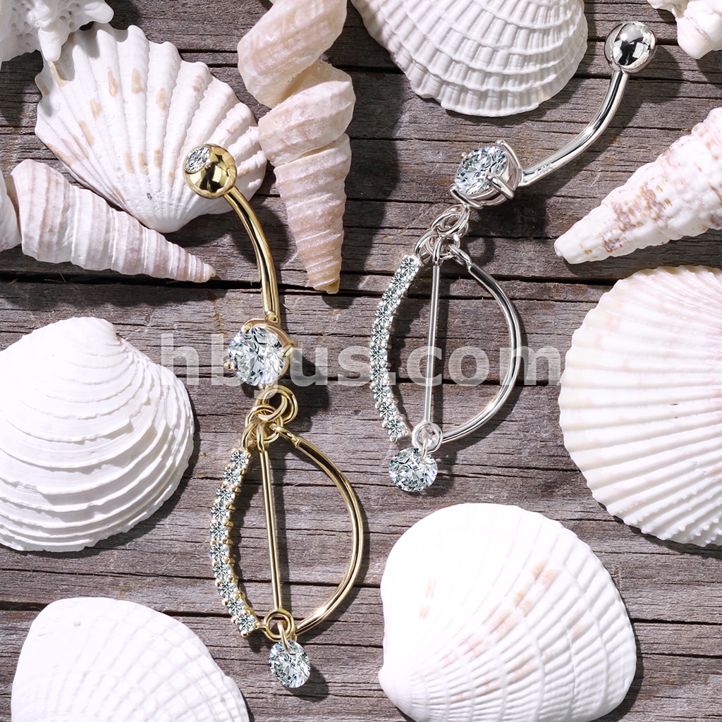 14K Gold "J" Fish Gem Paved Dangle With Prong Set CZ Navel Belly Button Ring