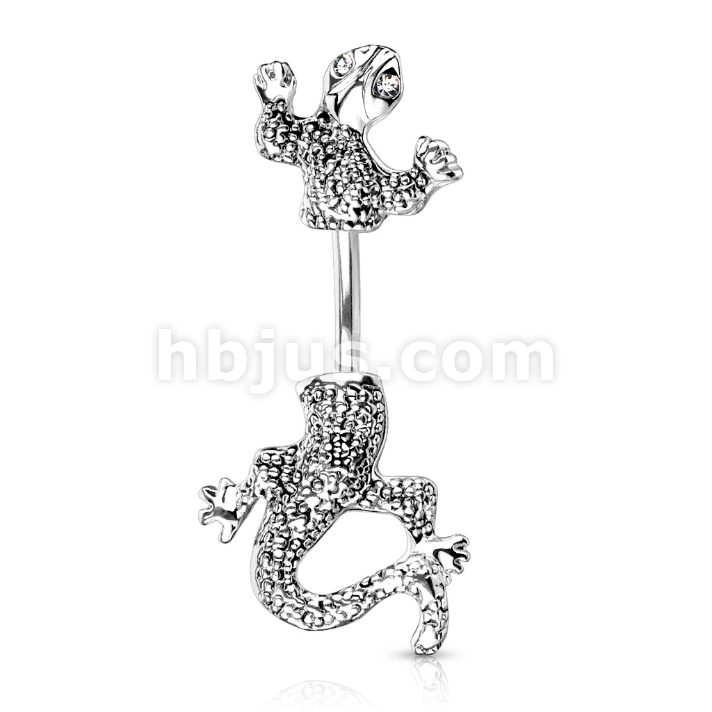 316L Surgical Steel CZ Eyed Chameleon Belly Button Ring
