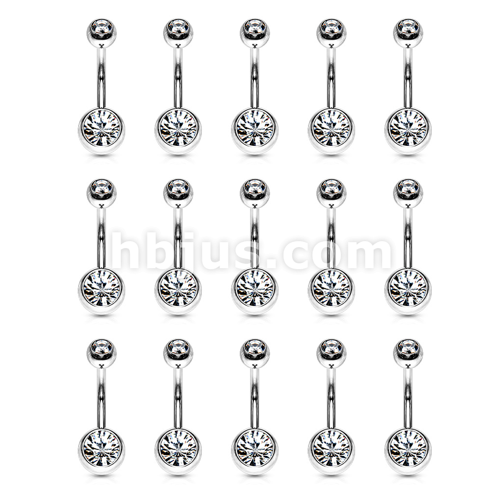100 PCS of 14 Gauge 316L Surgical Steel Navel Ring w/ 2 Clear CZs
