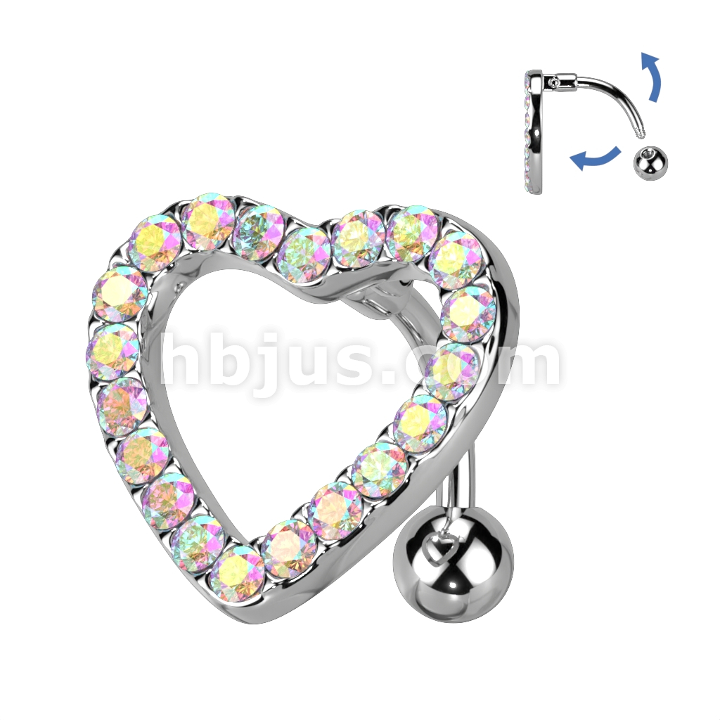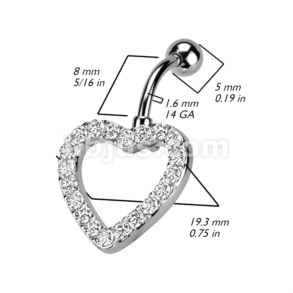 316L Surgical Steel Heart CZ Paved With Swinging Top Down Belly Button Ring