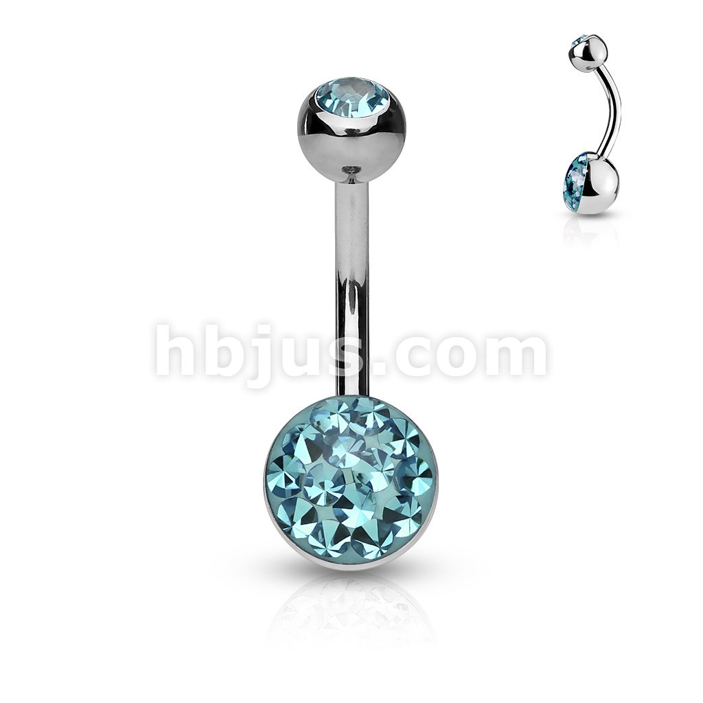 8mm Austrian Crystal Paved Ferido Dome Bottom and Gem Set Top Ball with 316L Surgical Steel Navel