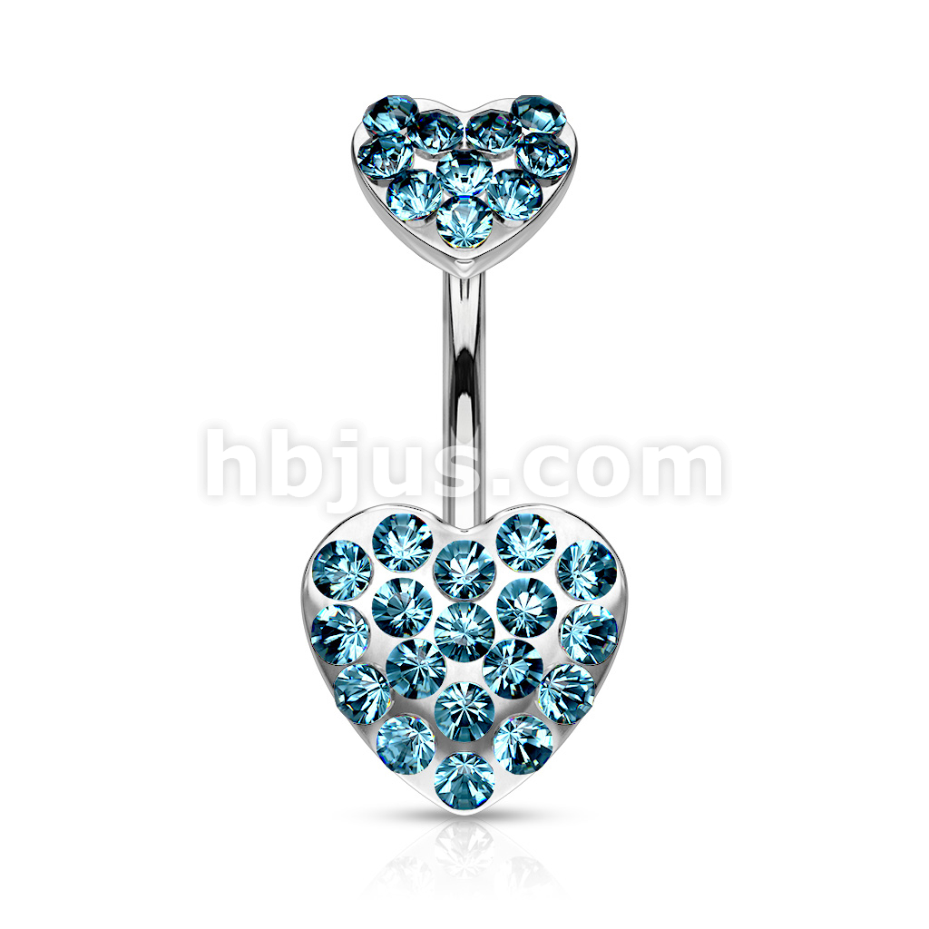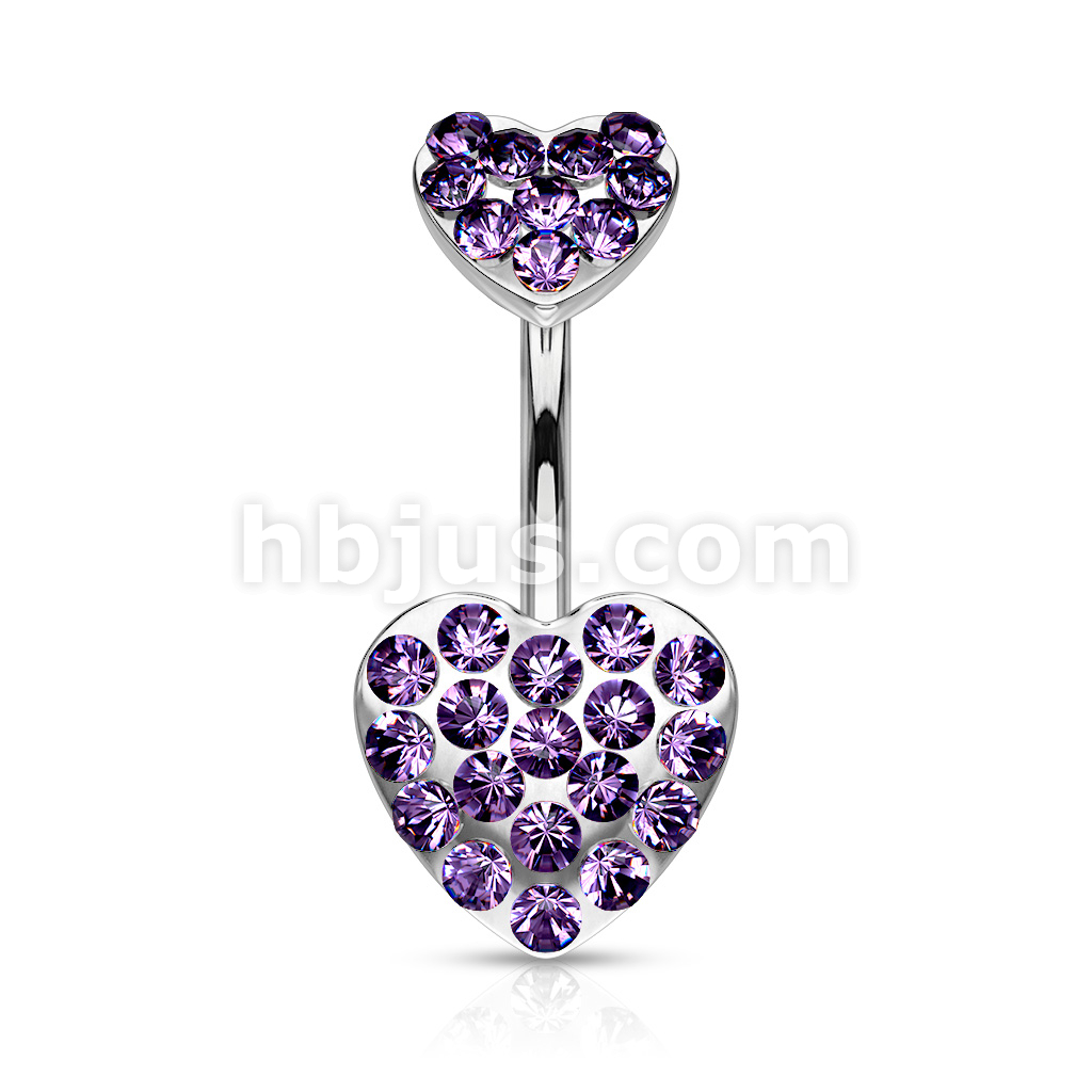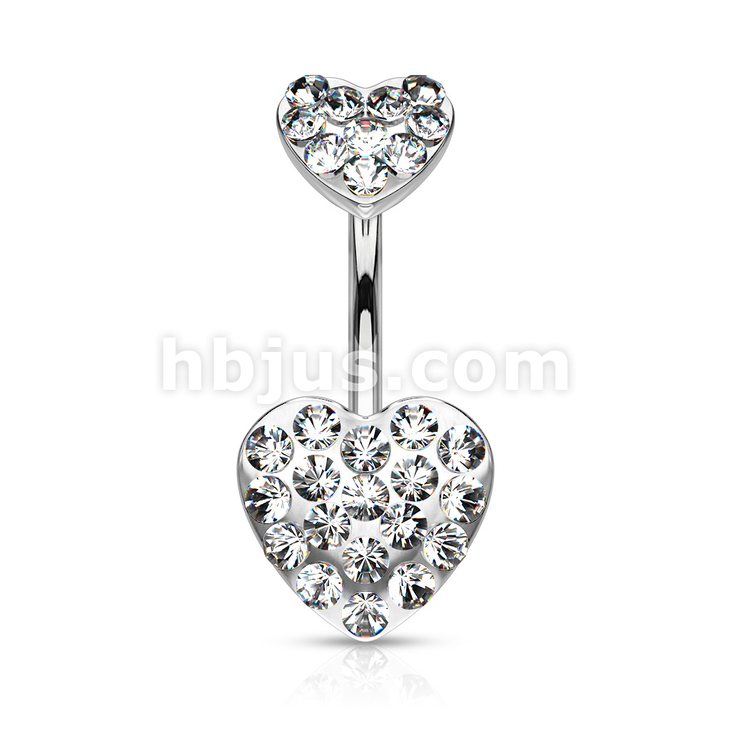 316L Surgical Steel Paved Gemmed Hearts Belly Button Ring